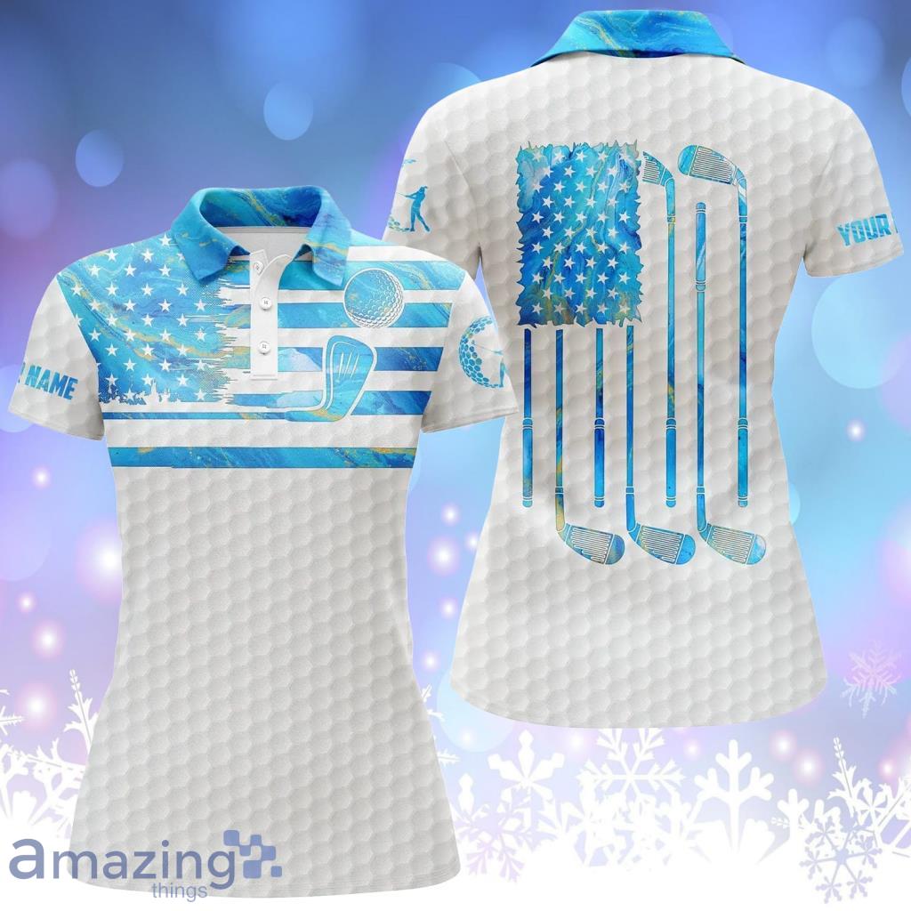 Show off your patriotism and love for golf with our Blue Watercolor American Flag Patriotic Womens Golf Polo Shirt Custom Name White Golf Polo Shirt! This polo shirt features a beautiful watercolor American flag design in shades of blue, making it a standout piece on the golf course. The shirt is made of high-quality fabric that is both lightweight and breathable, ensuring maximum comfort during your game. Plus, you can add your own custom name to the shirt for a personalized touch. Whether you’re playing a round with friends or competing in a tournament, this polo shirt is the perfect way to show off your style and love for the USA. Order yours today and get ready to turn heads on the course!
