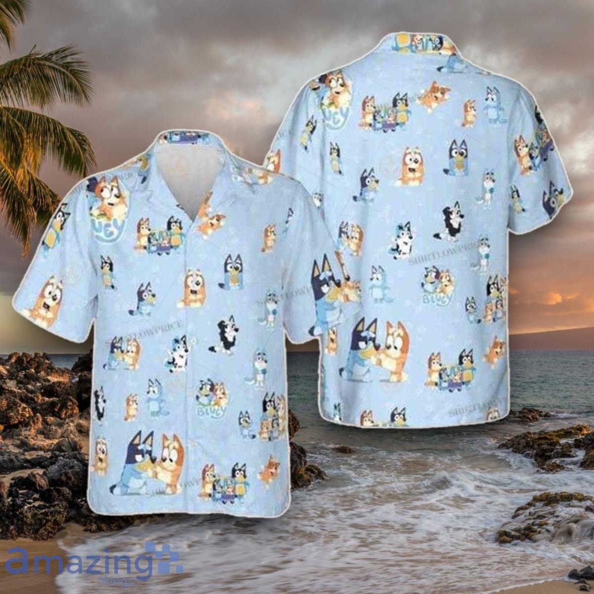 Get ready to add a pop of tropical fun to your wardrobe with our Bluey Hawaiian Shirt! Featuring adorable Bluey and Bingo characters, this cute and colorful shirt is perfect for your next vacation or summer outing. Made in the classic Aloha style, this shirt is a great gift for both men and women who love a touch of whimsy in their fashion choices. Stand out in style with our Bluey Hawaiian Shirt and bring a little piece of paradise wherever you go!