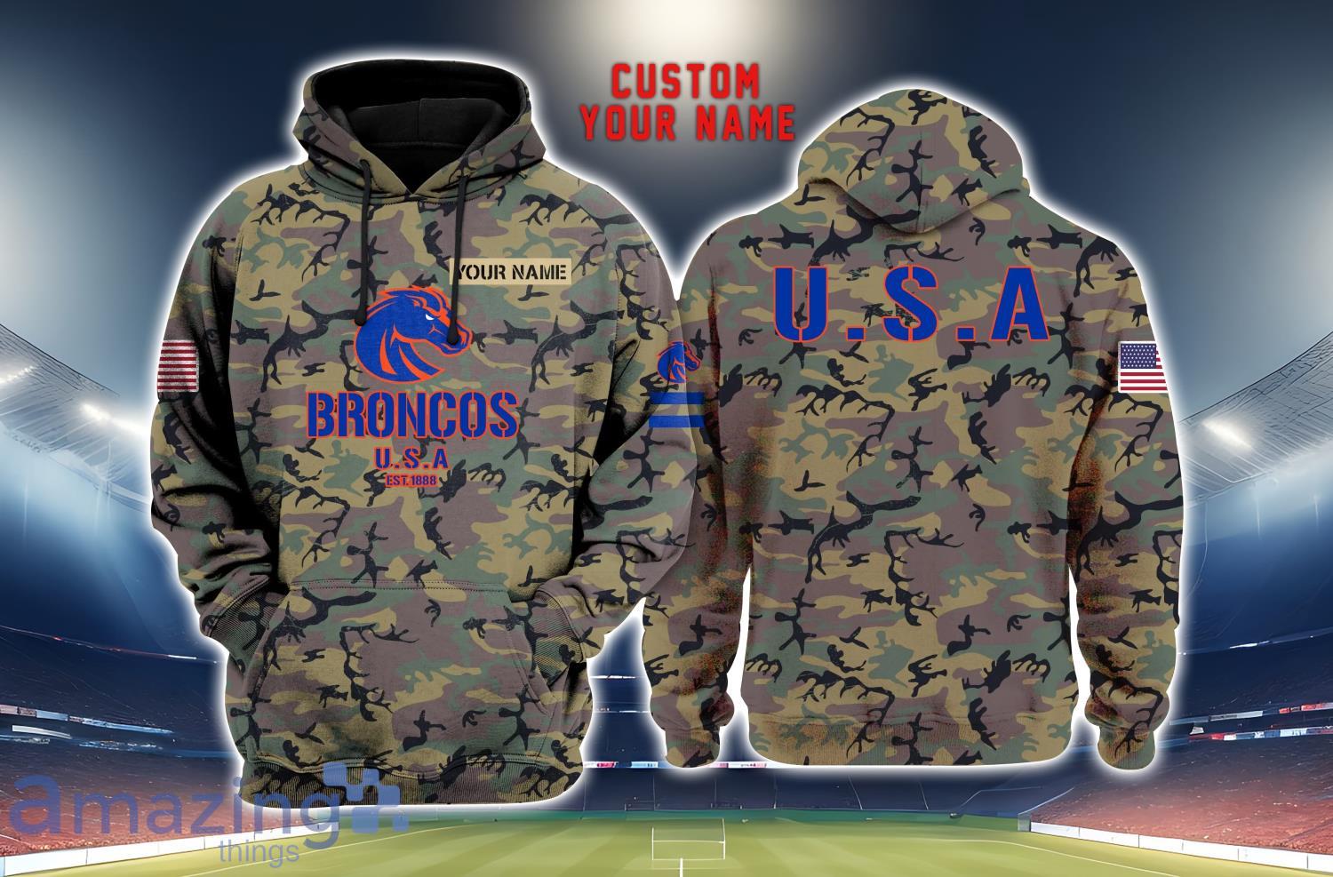 Boise State Broncos 3D Printing Army Camo Pattern Unisex Hoodies Custom Name For Fans Information