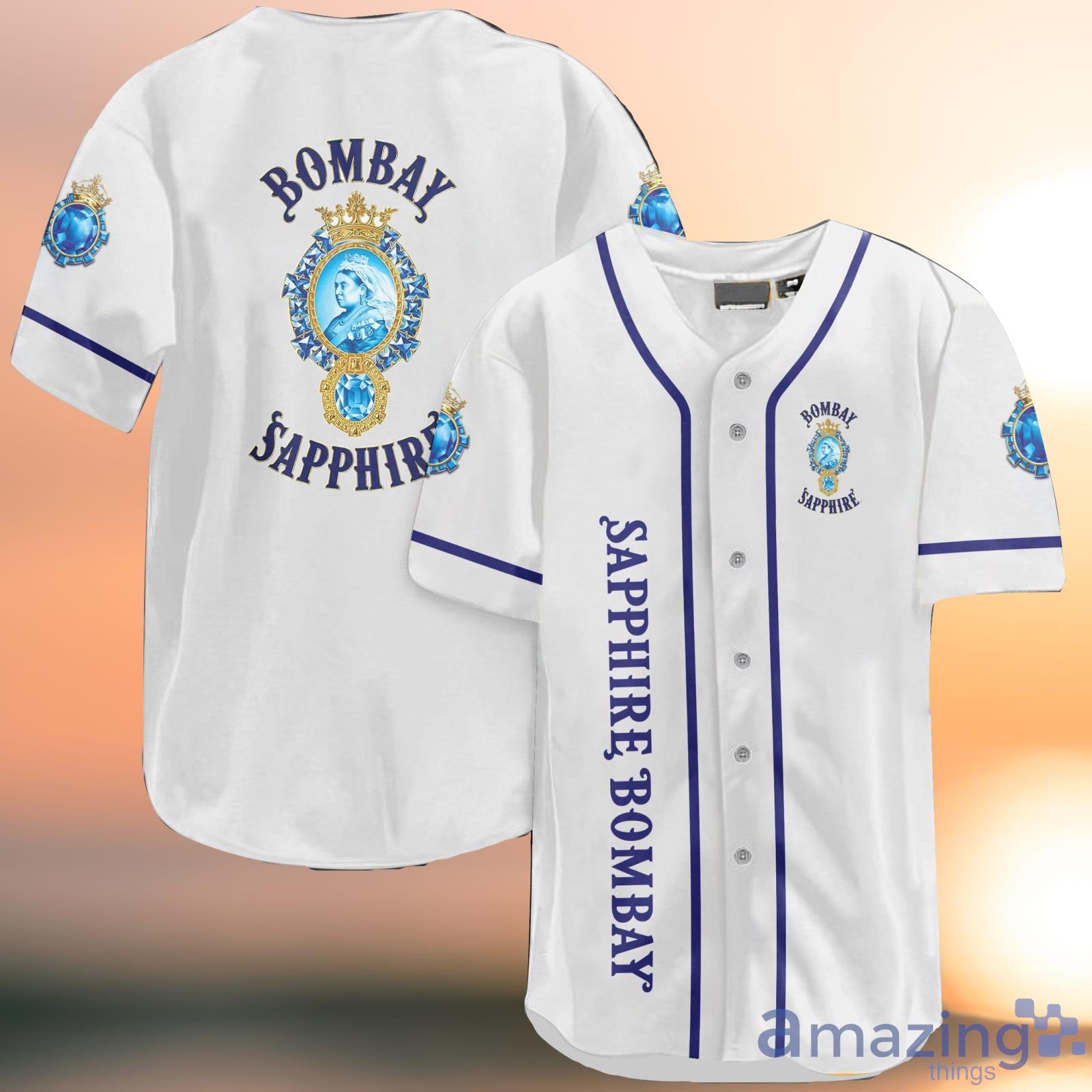 Crafted from high-quality materials, this shirt features a classic baseball jersey design with bold white color and contrasting blue accents. The Bombay Sapphire logo is prominently displayed on the front, letting everyone know that you have impeccable taste in both fashion and liquor.