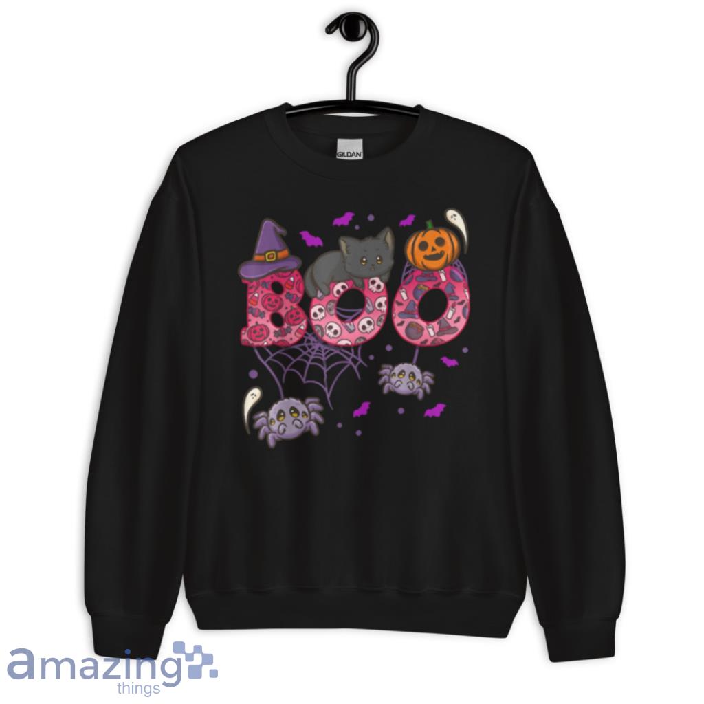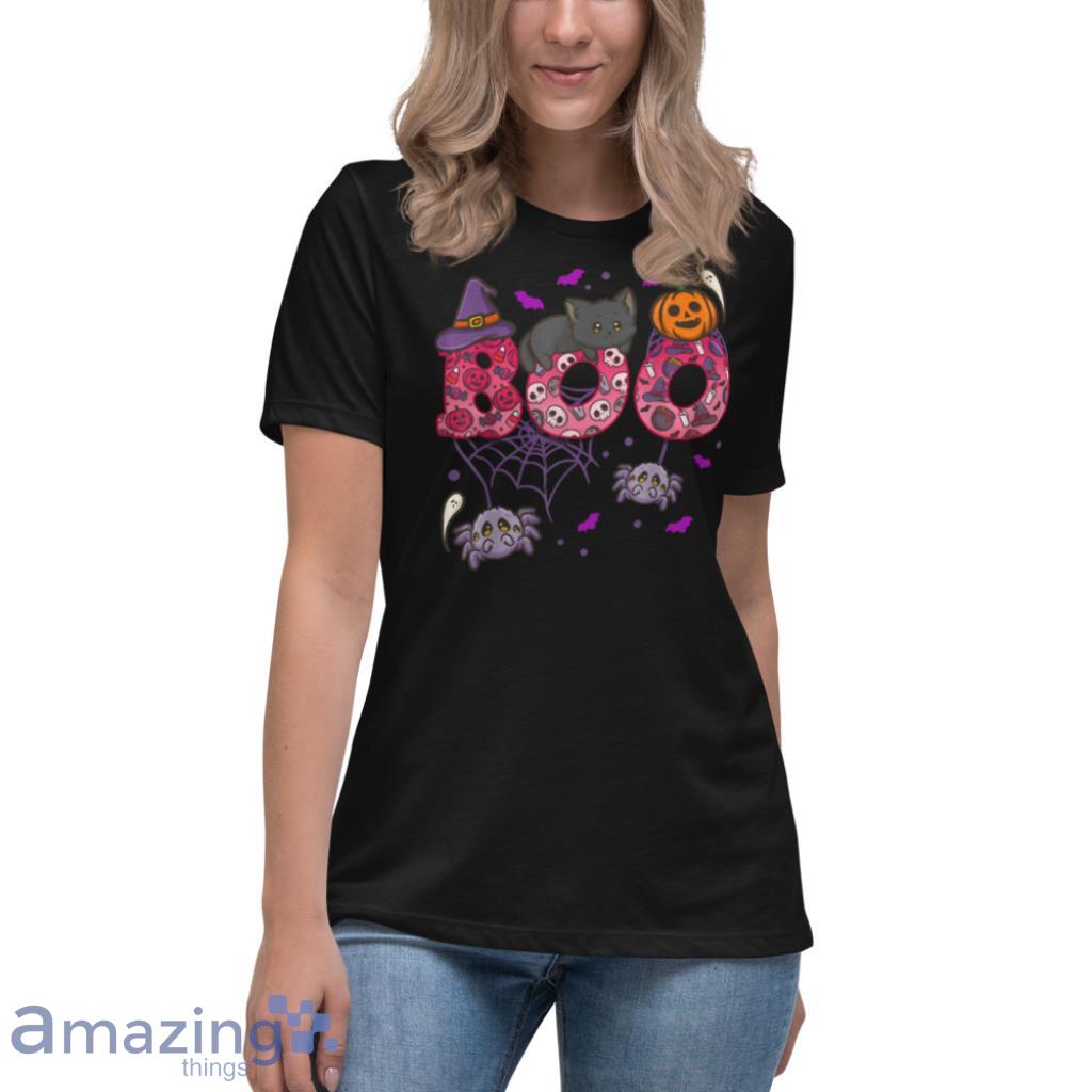 Boo With Spiders And Witch Hat Black Cat Halloween Gifts T Shirt