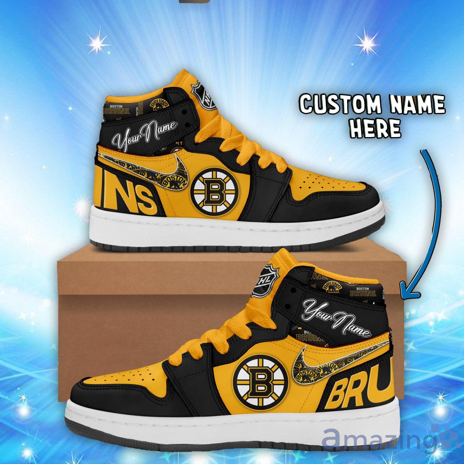 Join the ranks of Bruins fans who proudly wear their team’s colors and order your personalized Boston Bruins Air Jordan Hightop Shoes today!