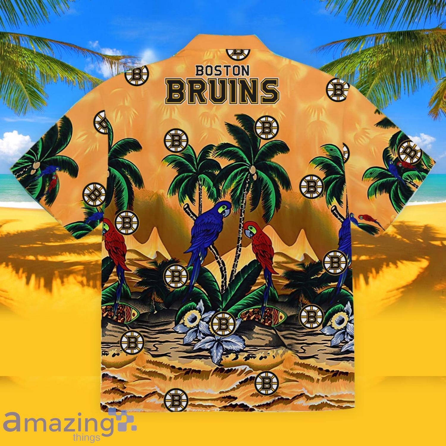 Boston Bruins Parrot Short Sleeve Hawaiian Shirt Details: