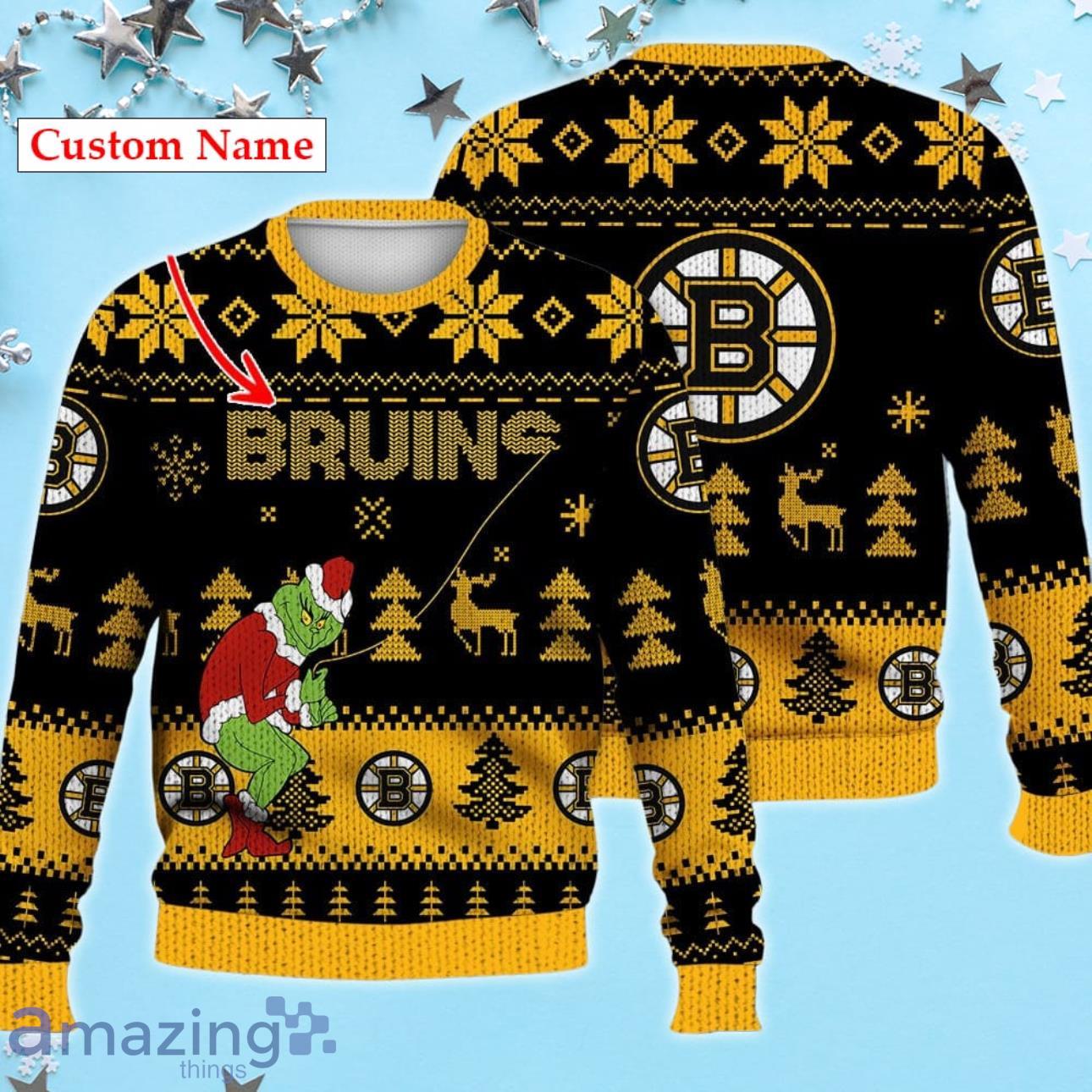 Boston Bruins Ugly Sweater Christmas Custom Name Ice Hockey NHL
