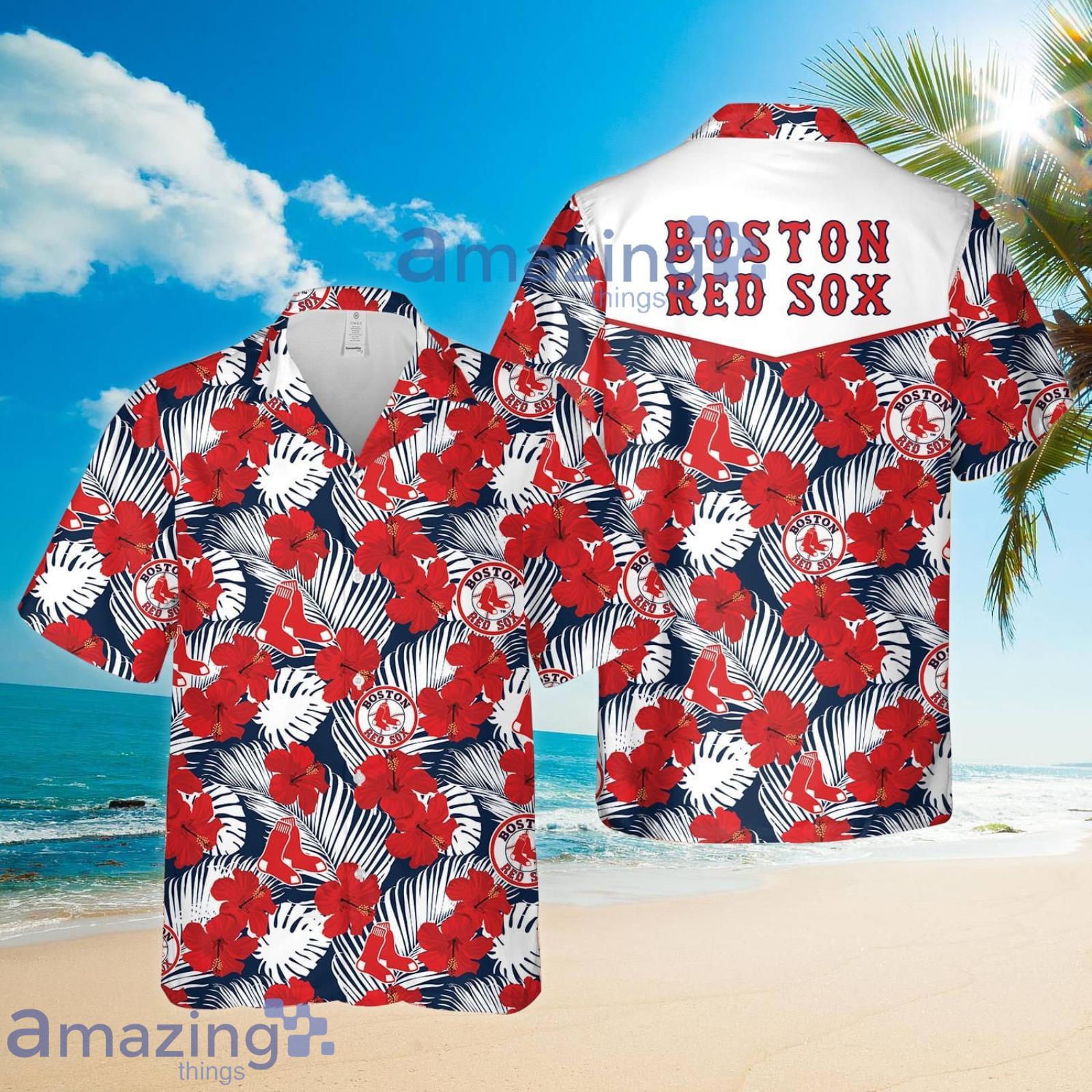 The shirt features a vibrant red color with a bold Boston Red Sox logo on the chest. The iconic team logo is surrounded by hibiscus flowers that add a touch of tropical flair to the design. The shirt is made from a soft and breathable material that will keep you feeling comfortable and cool all day long.