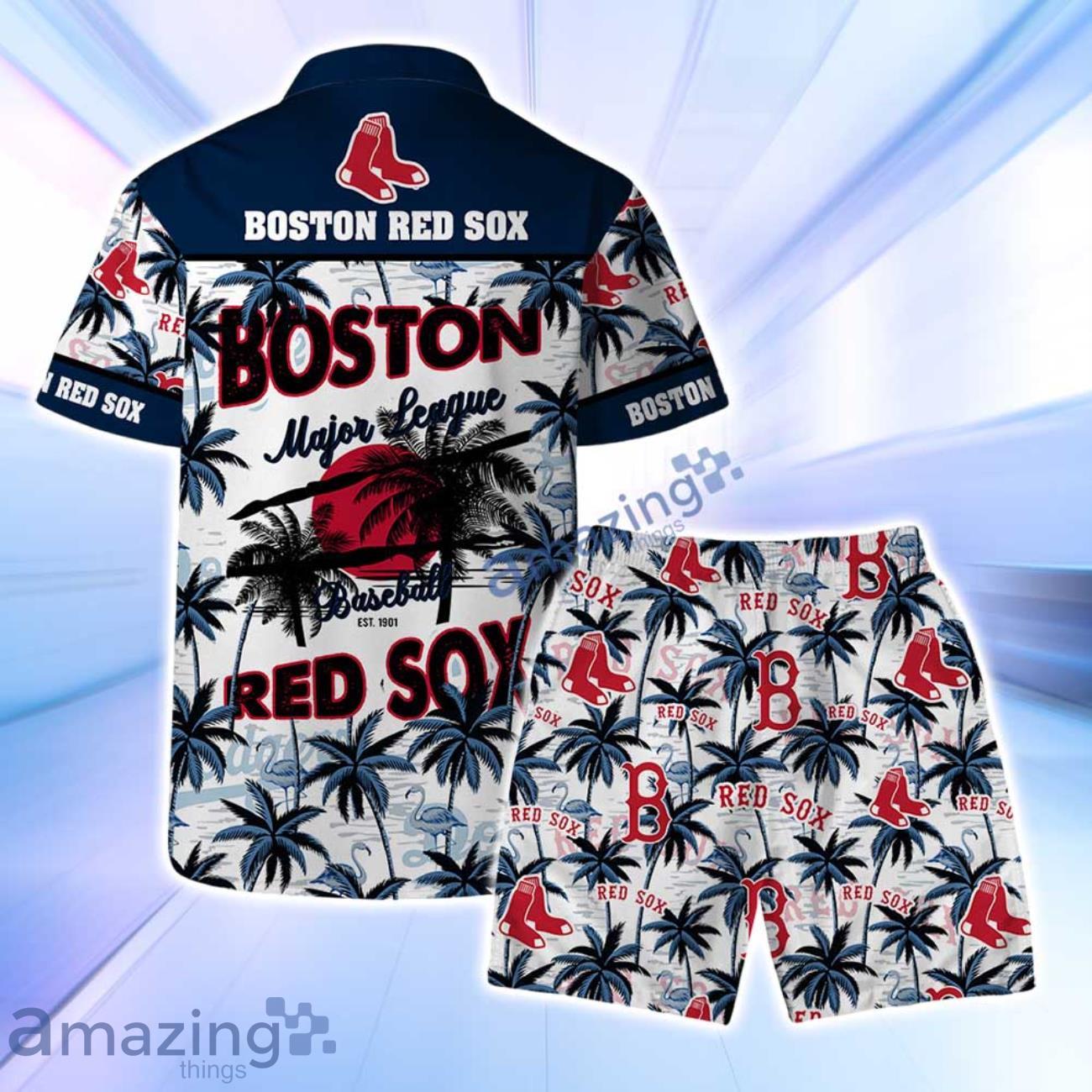 Boston Red Sox MLB Logo Coconut Tree Pattern Hawaiian Shirt & Short Details:
