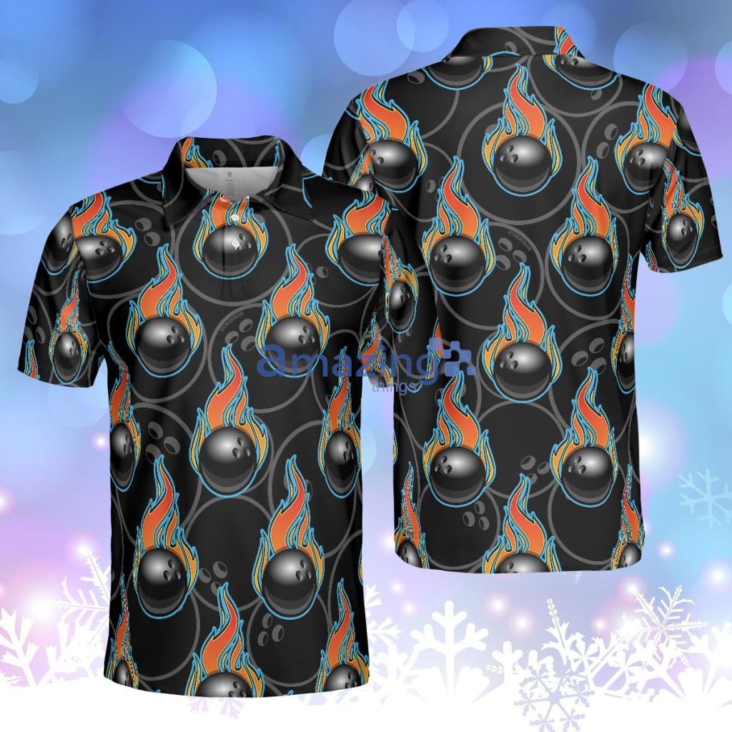 Bowling In Fire Seamless Pattern Polo Shirt, Bowling Ball Polo Shirt, Best Bowling Shirt For Men