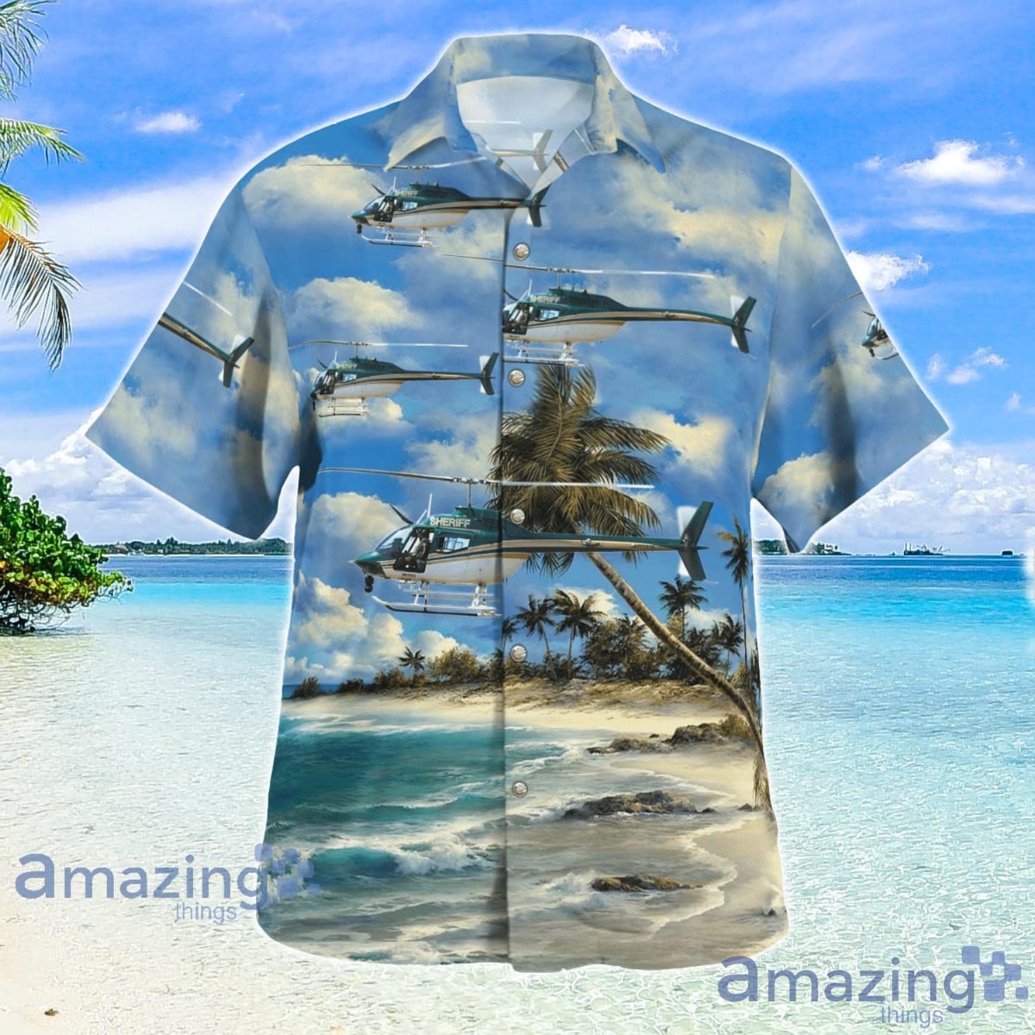So why wait? Add the Brevard County Sheriff Department Bell OH-58A Kiowa Hawaiian Shirt to your summer wardrobe today and make a statement that you won’t soon forget!