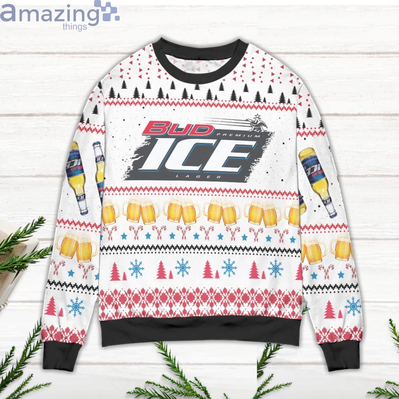 Some of the Bud Ice Snowflake And Pine Tree Pattern Ugly Christmas Sweater photos
