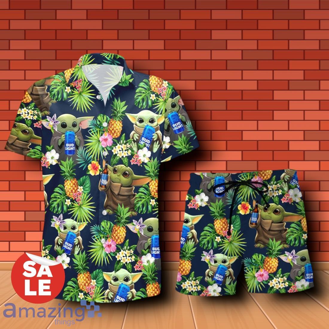 Bud Light Beer Baby Yoda Tropical Flowery Hawaiian Shirt & Short Details: