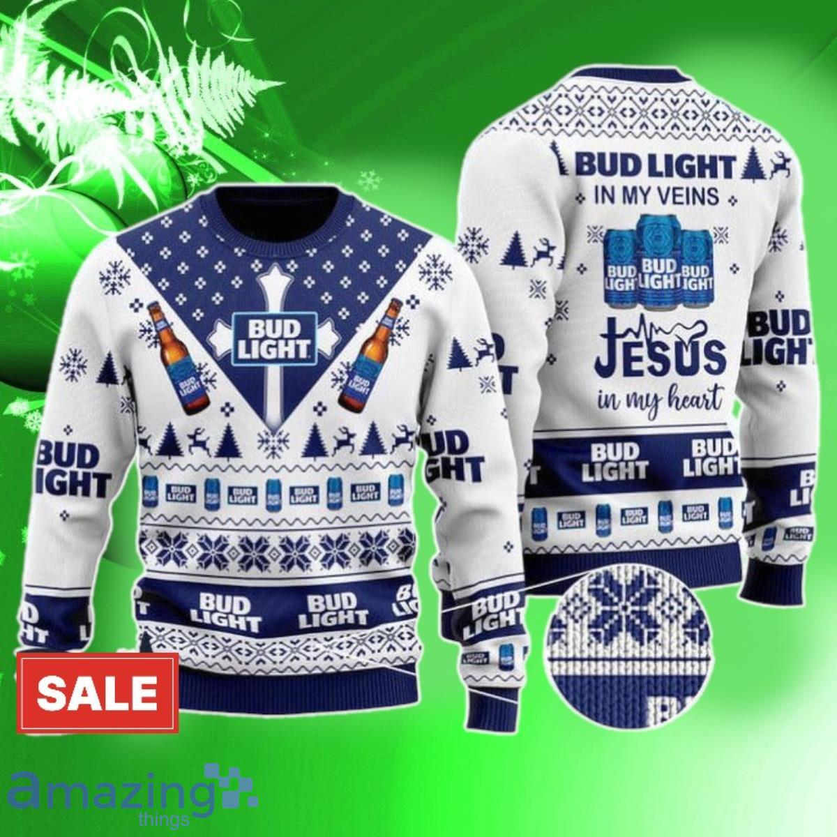 Bud Light In My Veins Jesus In My Heart Christmas Ugly Sweater Impressive Gift Information