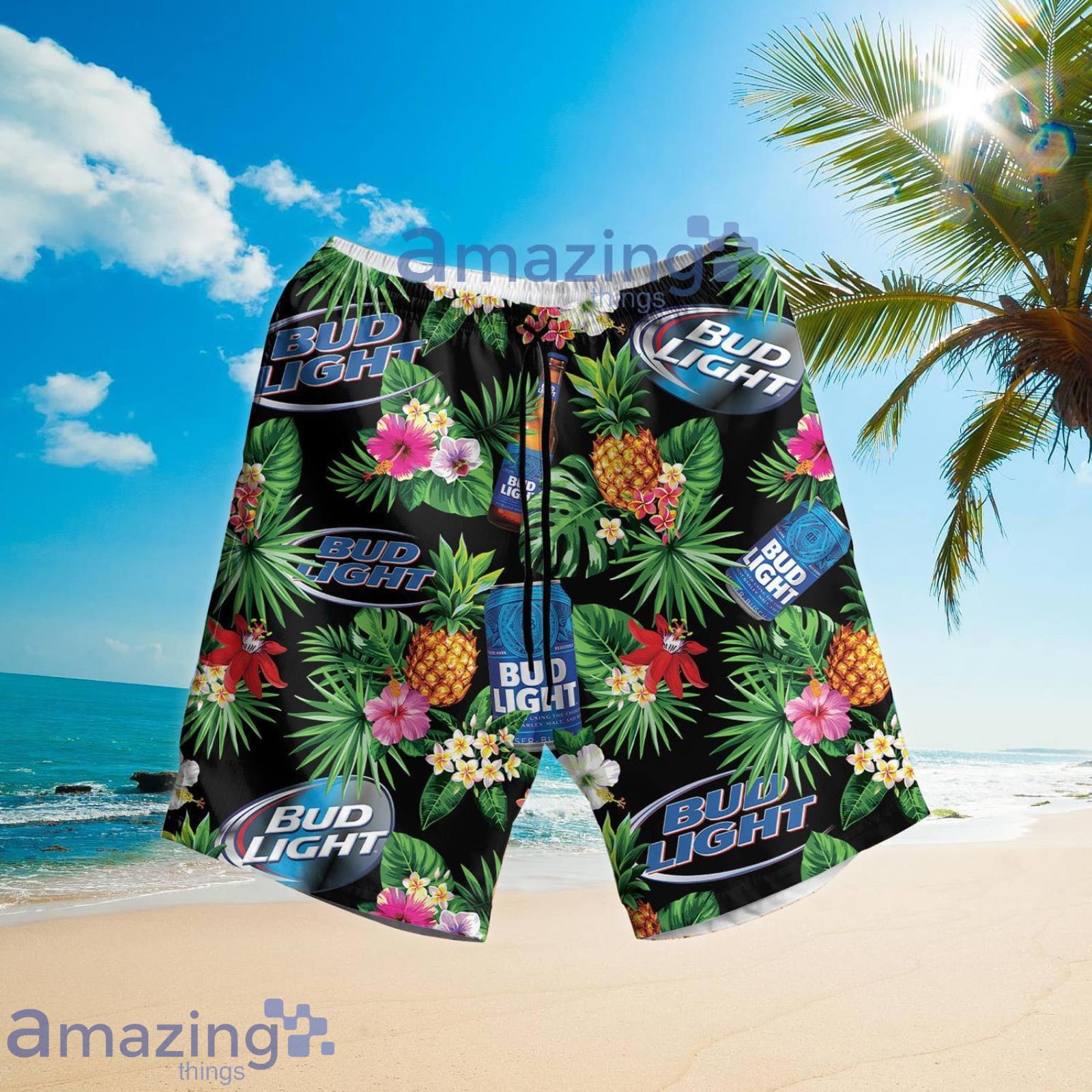 Bud Light Pineapple Tropical Aloha Summer Set Green Hawaiian Shirt And Shorts Details: