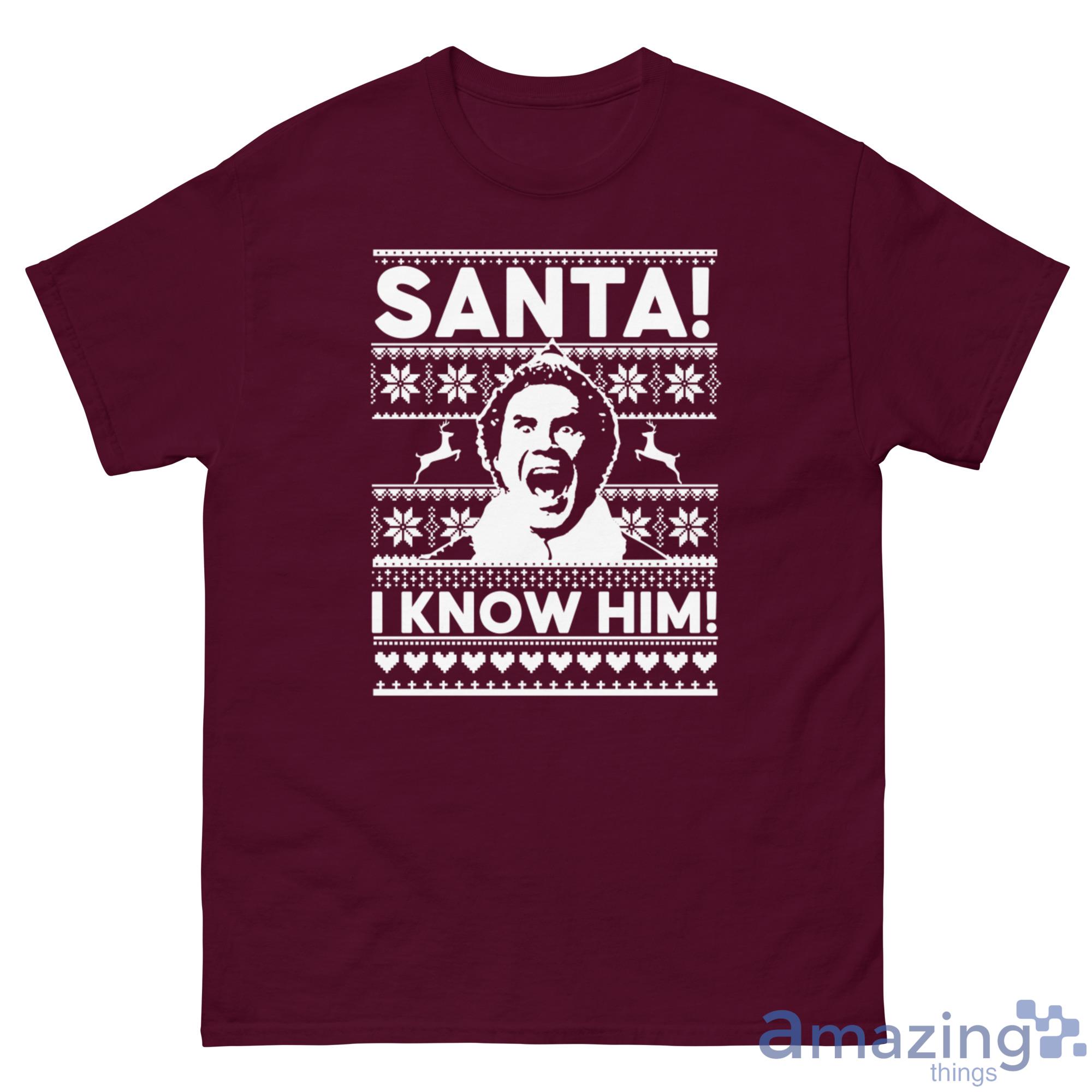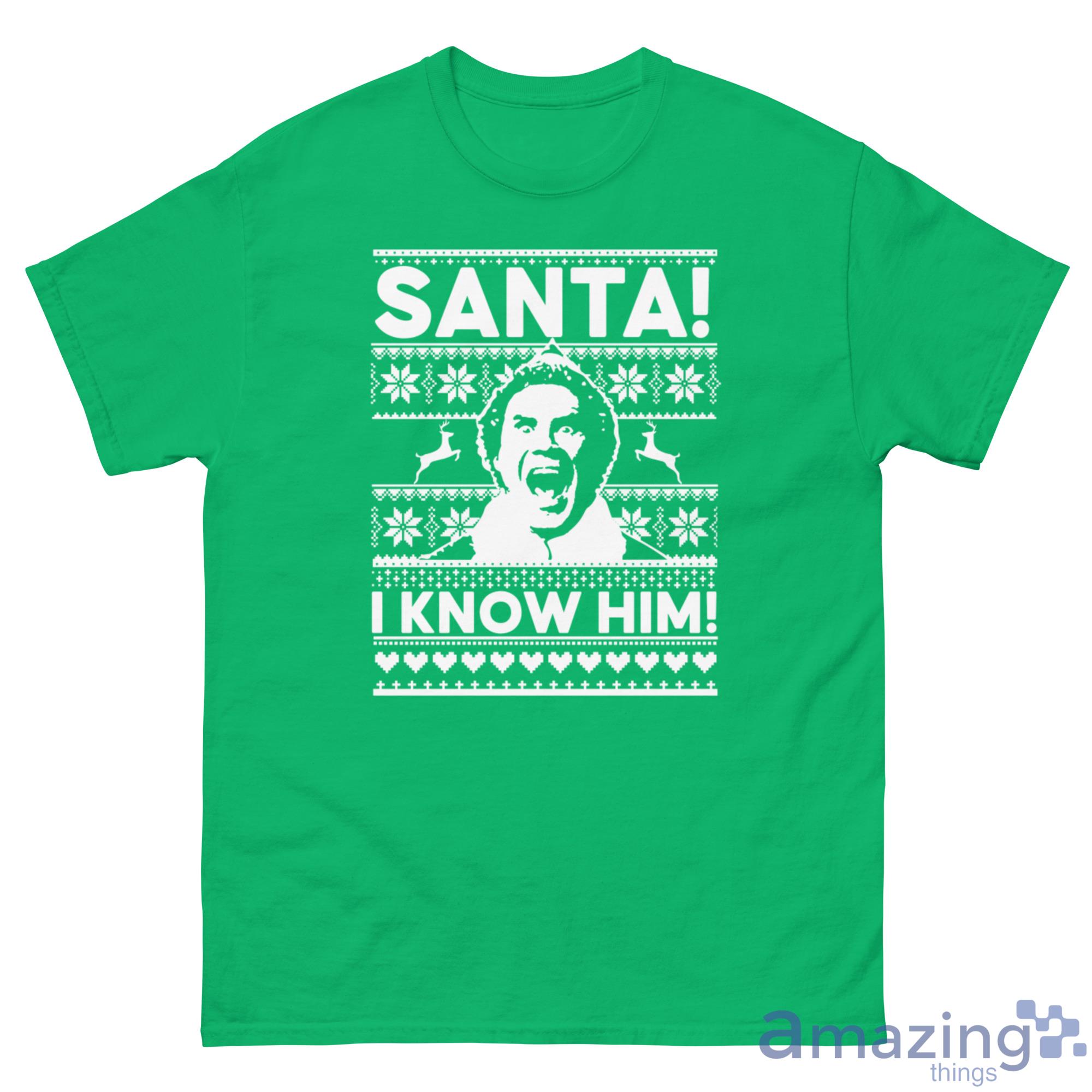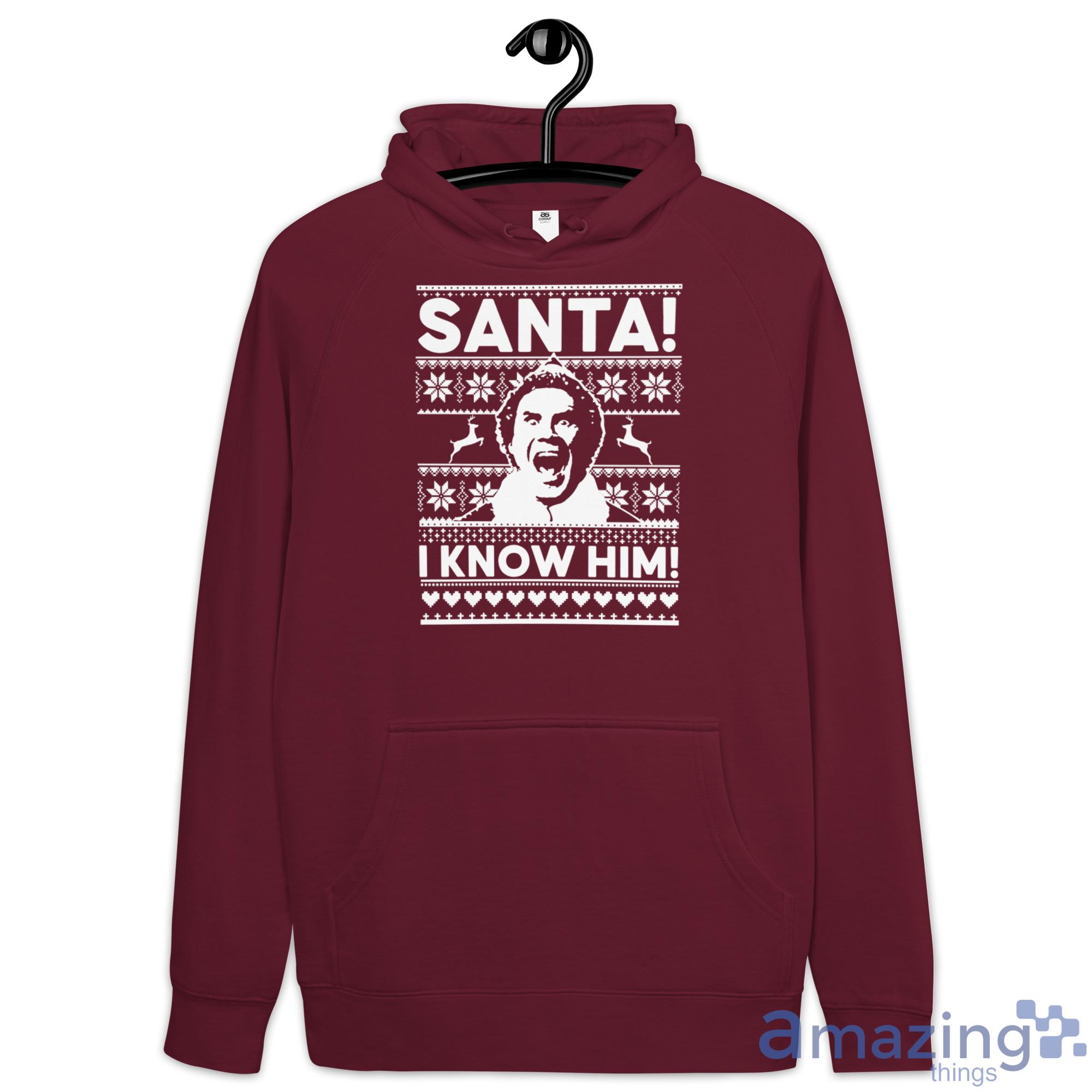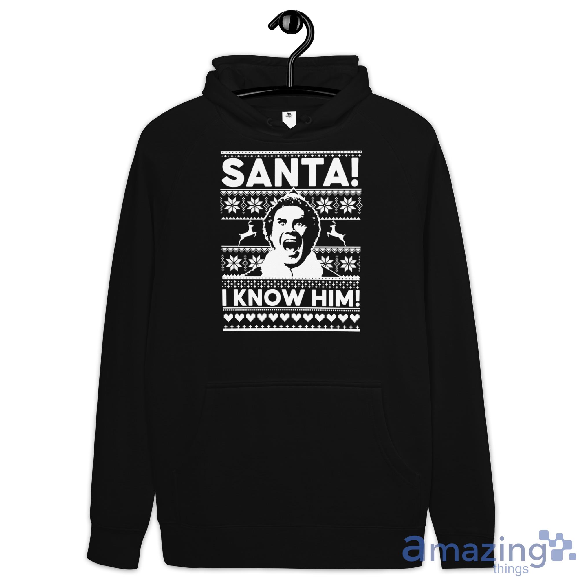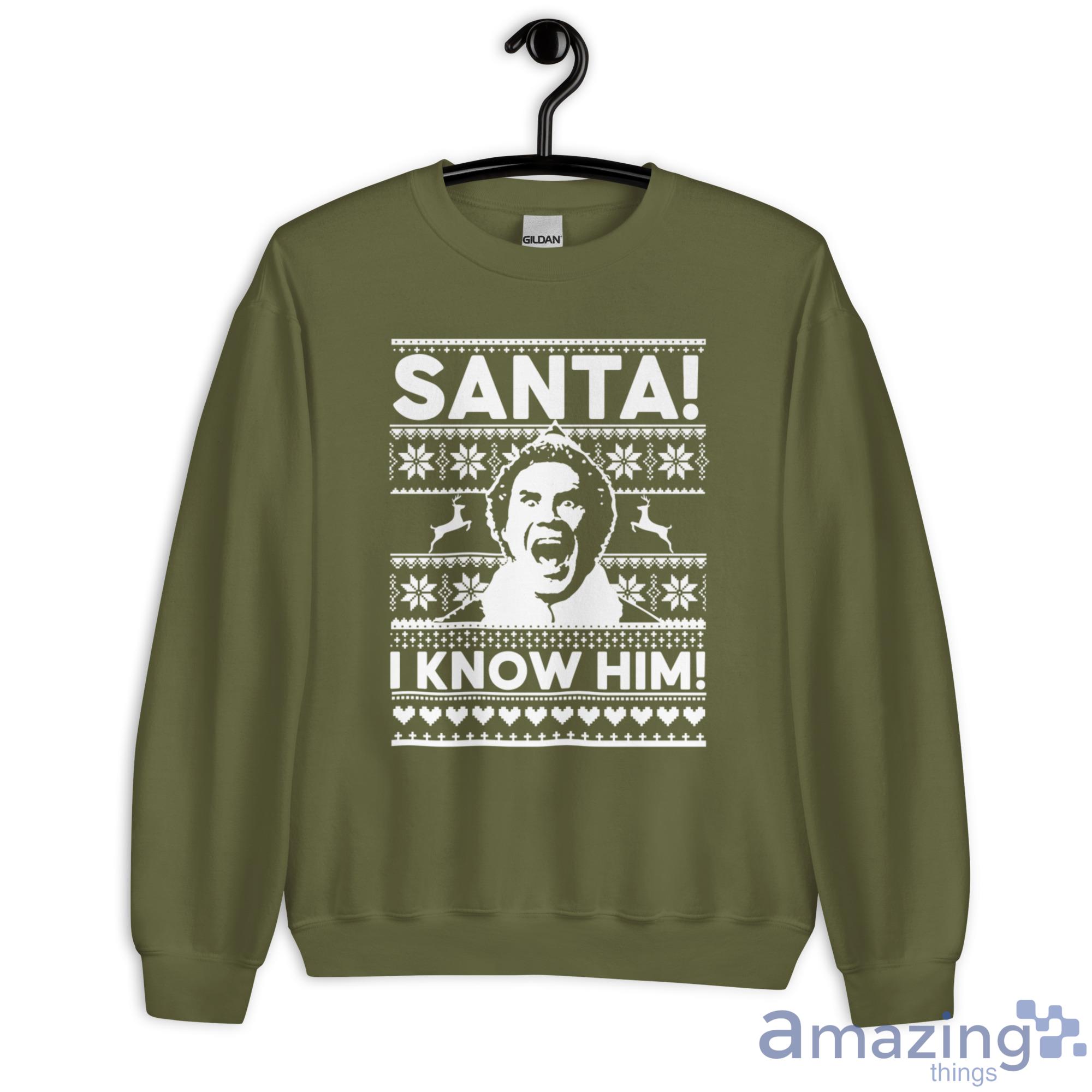 Looking for a way to show your holiday spirit this year? Check out our Christmas sweatshirt! This festive design features Buddy the Elf with the caption "I Know Him!" – perfect for letting everyone know that you're a big fan of Santa Claus. Best of all, our sweatshirt is sure to keep you warm and comfortable all season long. So don't wait – order your Christmas sweatshirt today!