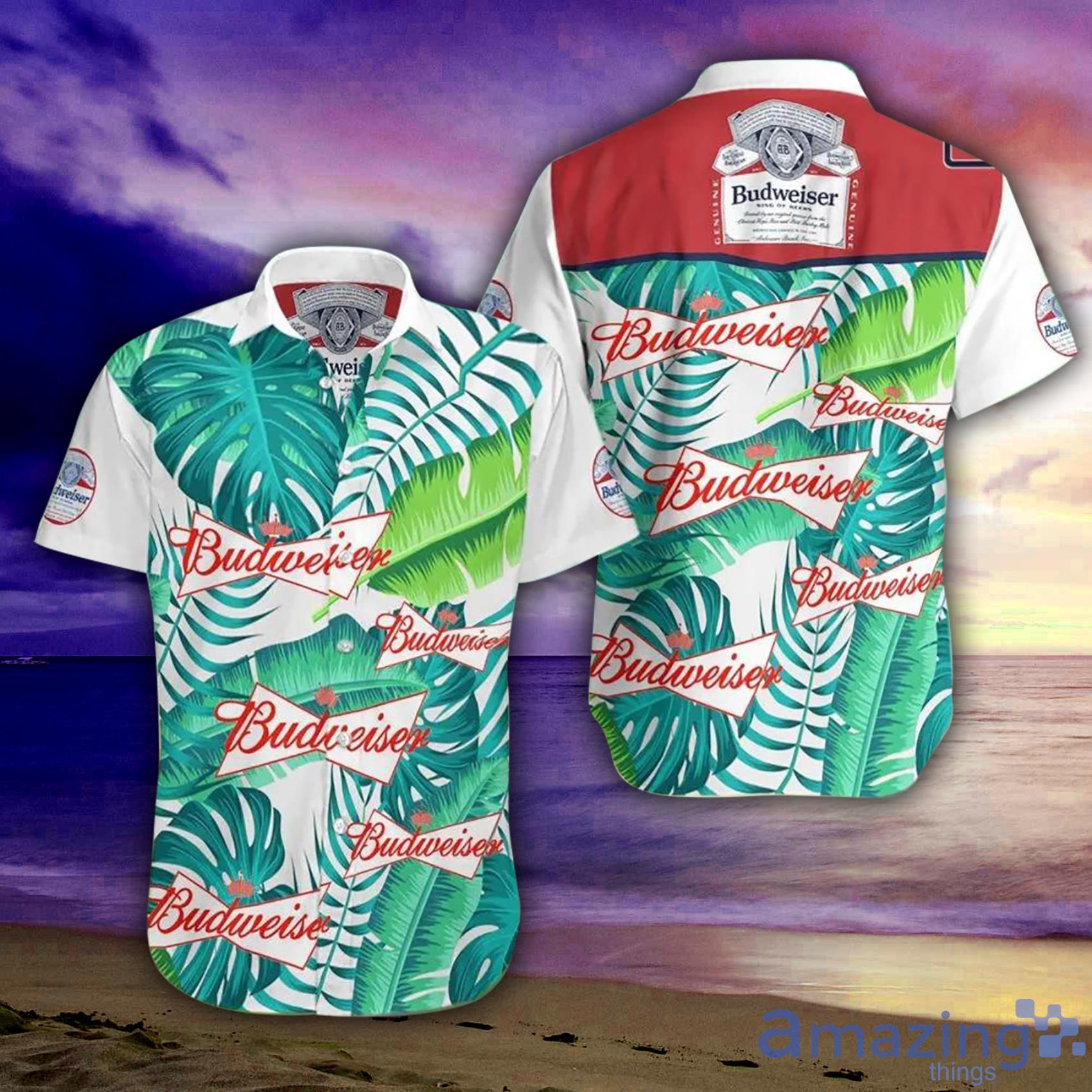 Budweiser Beer Green Banana Leaves Pattern Short Sleeve Hawaiian Shirt