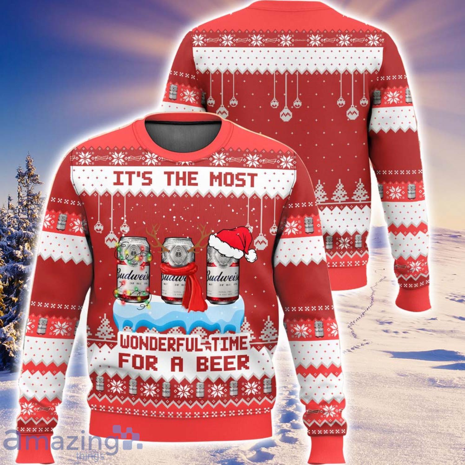 Budweiser It’s The Most Wonderful Time For A Beer All Over Printed Ugly Christmas Sweater Christmas Gift For Family