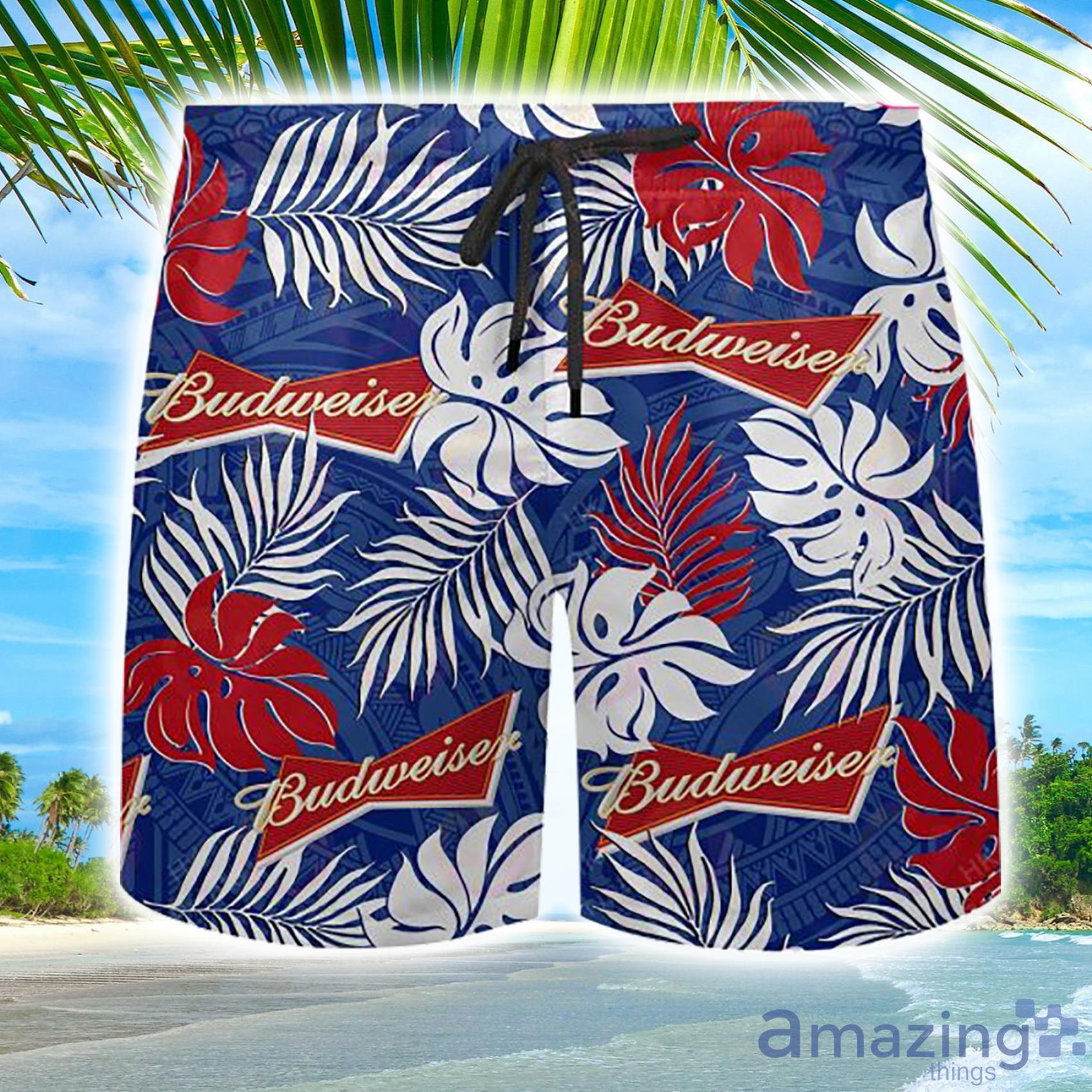 Some of the Budweiser Tattoo Palm Leaf Anf Tropical Leaf Hawaiian Shirt And Short photos