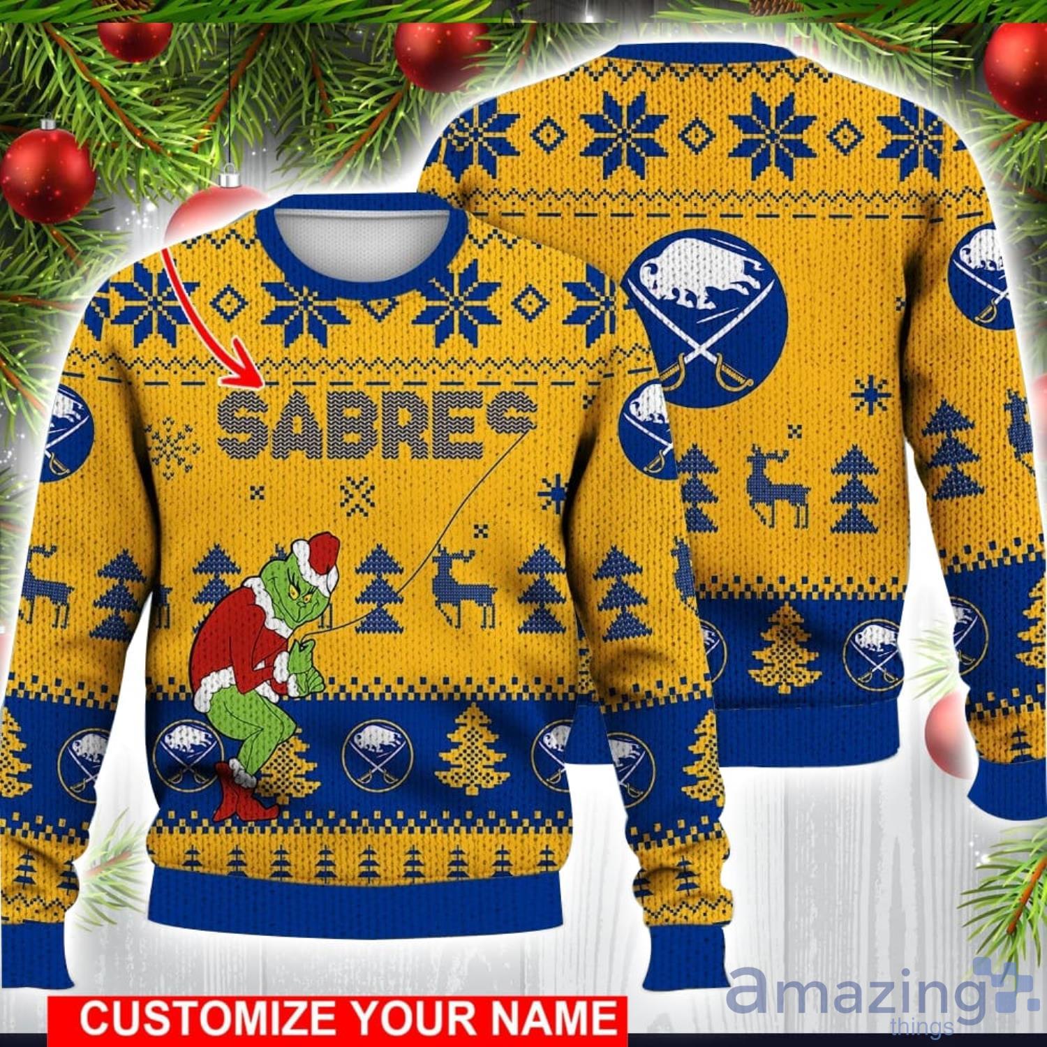 Buffalo Sabres Grinch Ugly Christmas Sweater Ice Hockey NHL Christmas Gift 3D Sweater Custom Name