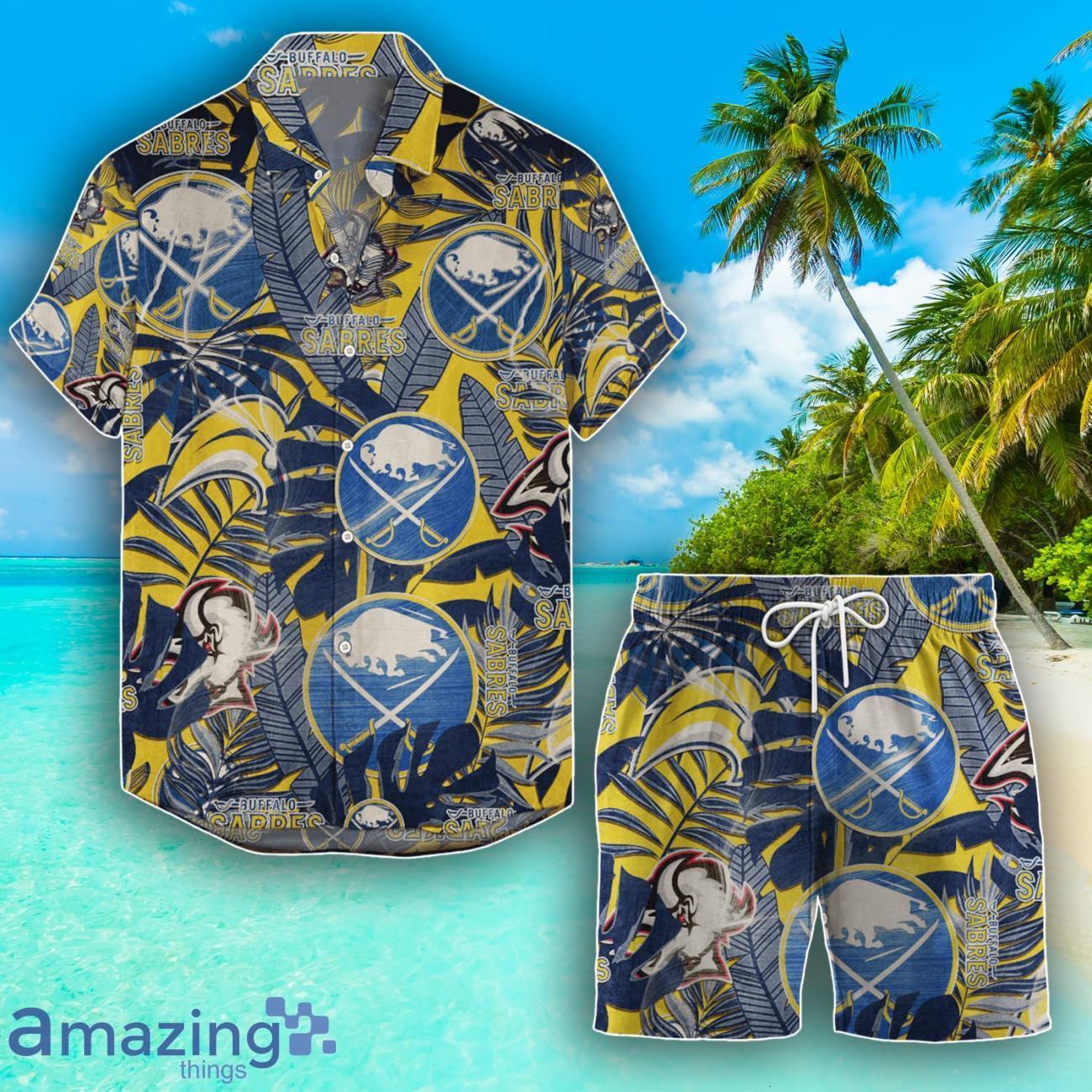 Get ready to show off your Buffalo Sabres pride in style with this Buffalo Sabres Set Hawaiian Shirt And Shorts Combo! Made for true fans, this retro-style outfit features the iconic team logo and colors, perfect for game days, tailgates, or just lounging around in the summer. The breathable fabric will keep you cool and comfortable while cheering on your favorite team. Stand out from the crowd and represent your Sabres in a unique and fun way with this must-have combo set. Upgrade your fan gear collection today!