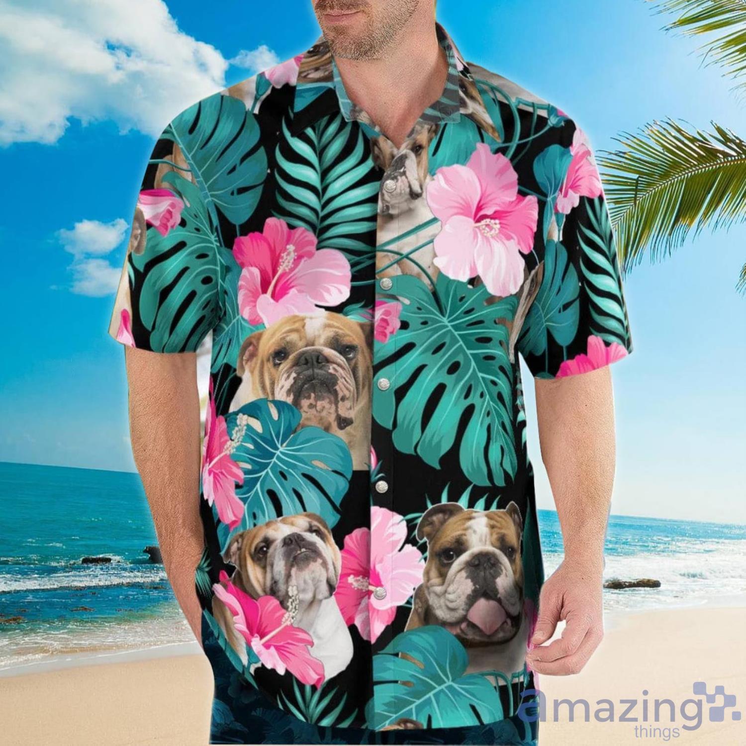 Some of the Bulldog Tropical Pink Flower And Feaf Pattern Hawaiian Shirt For Men And Women photos