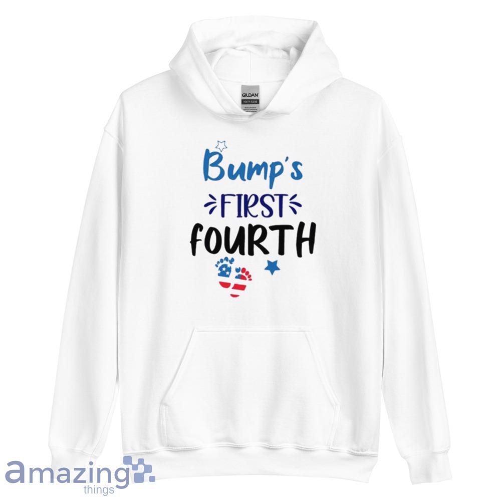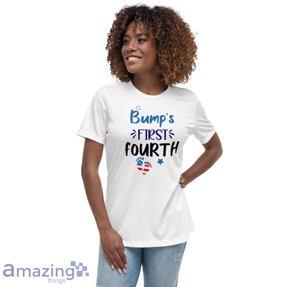 Bump’s First Fourth of July T-Shirt, Pregnancy Announcement, Woman Maternity Tees, Patriotic Day Shirt Details