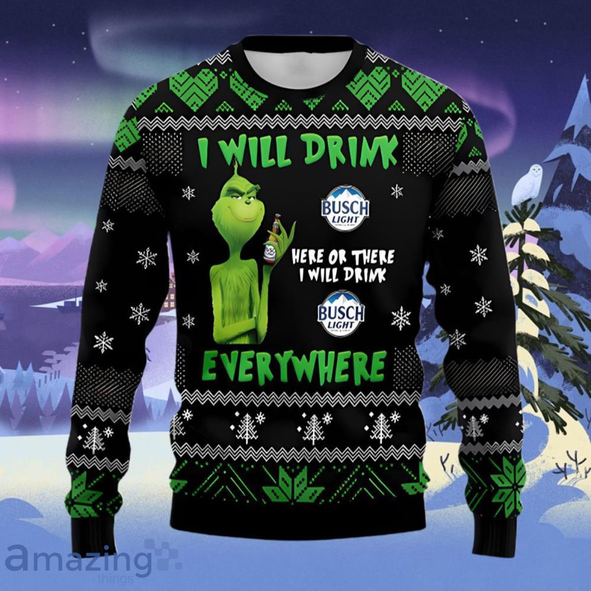 Busch Light Beer Grinch I Will Drink Everywhere Ugly Christmas Sweater Style Gift For Men And Women Informations: