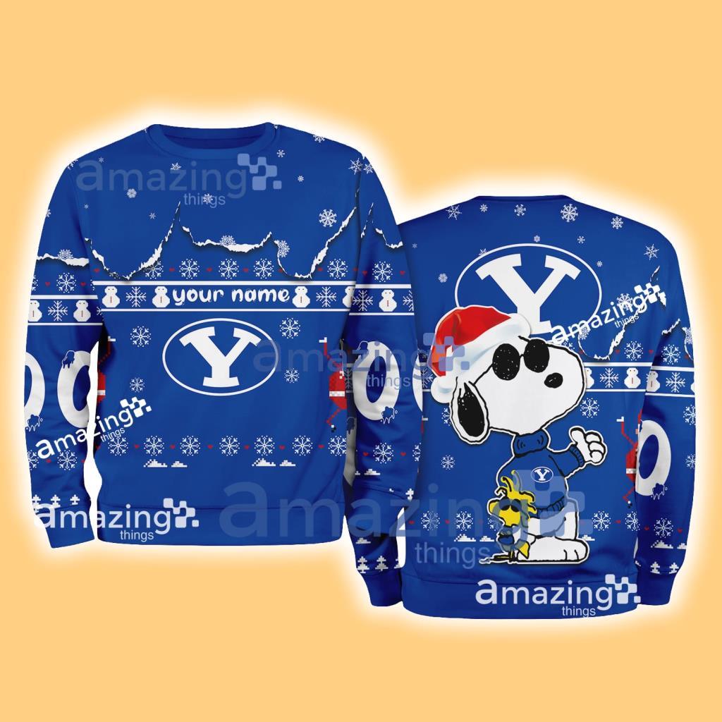 BYU Cougars NCAA Snoopy and Woodstock Cute Personalized Number Christmas Ugly Sweater New Gift Limited Edition Information