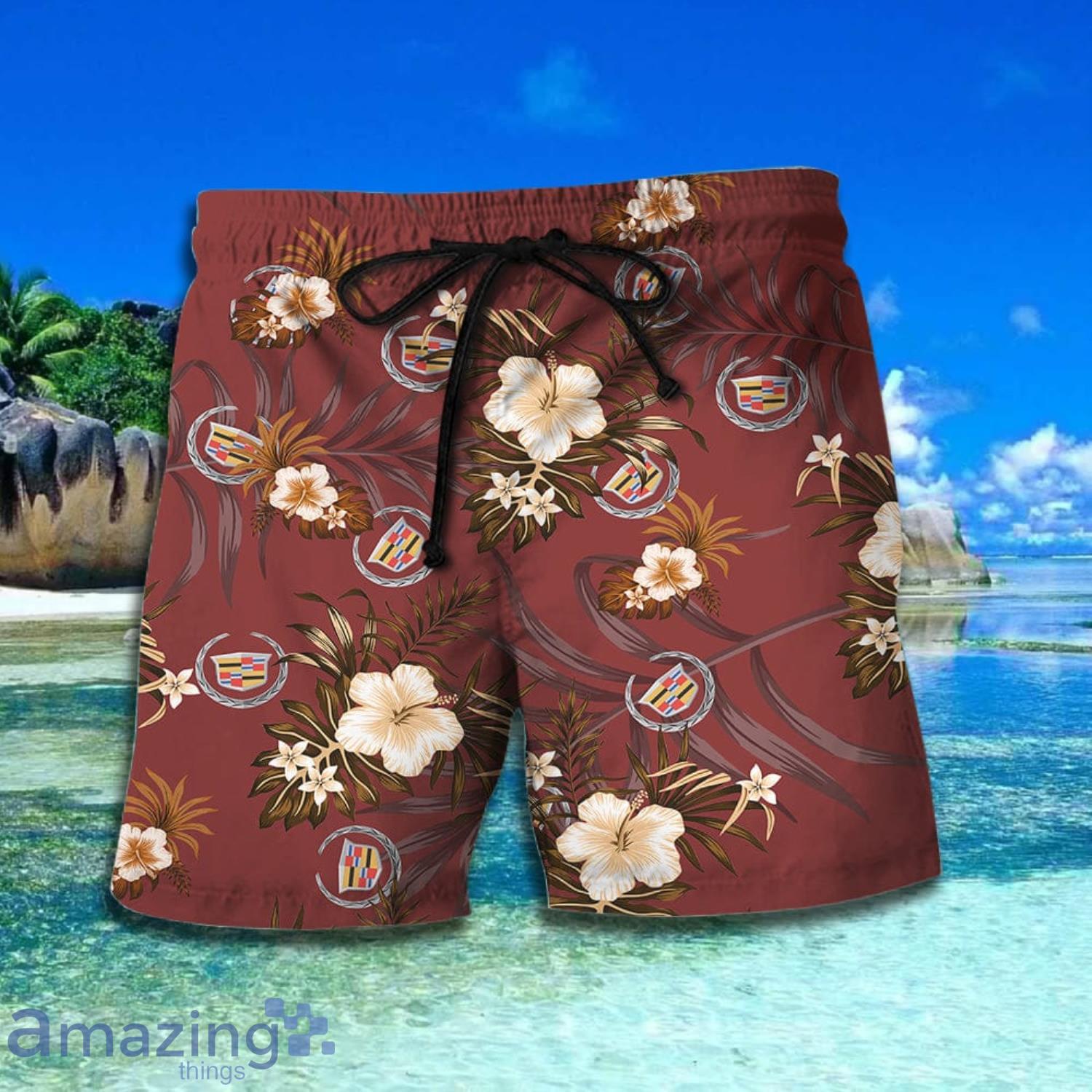 Cadillac Flowers Pattern Red Short Sleeve Hawaiian Shirt And Short Details: