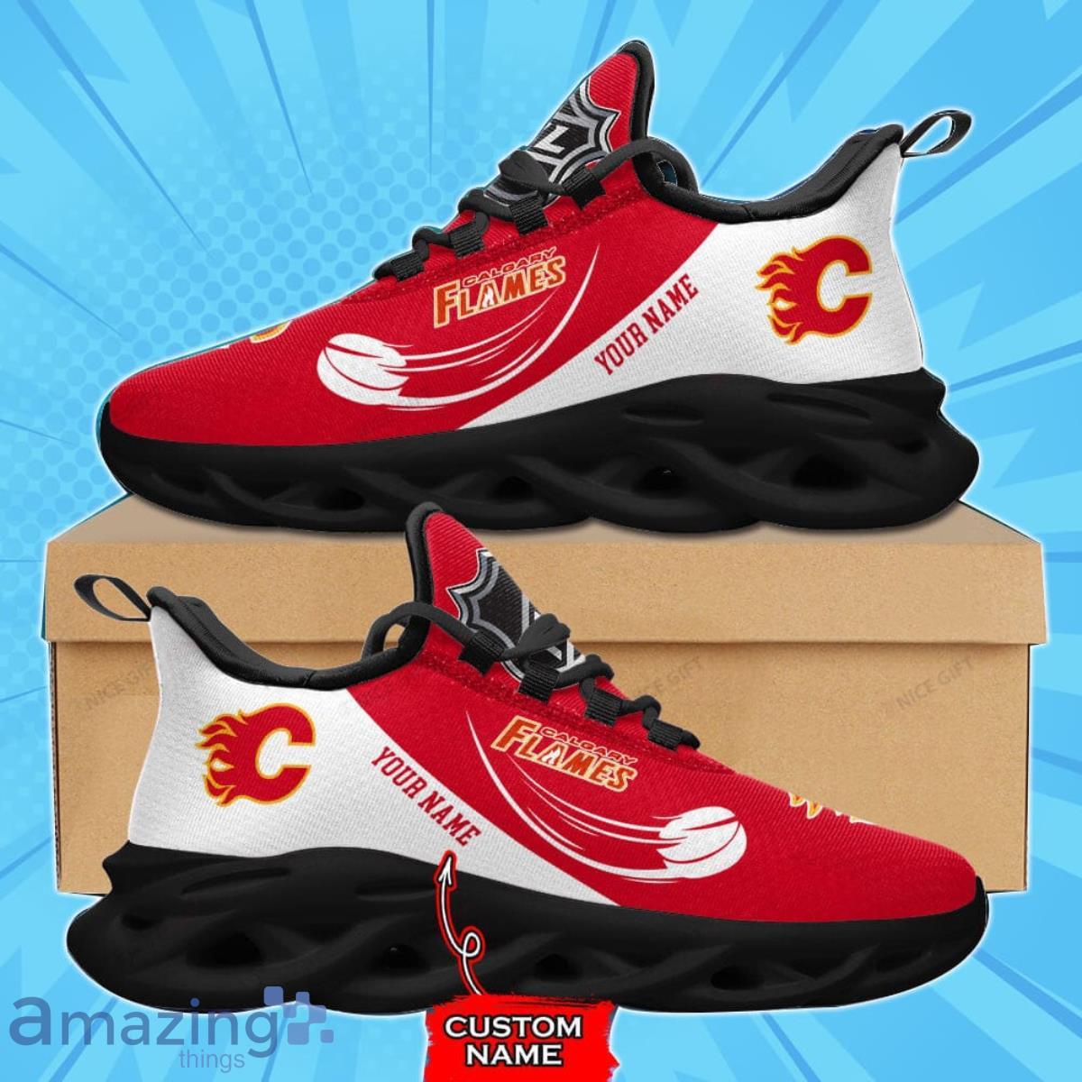 So, why settle for ordinary footwear when you can showcase your team spirit in style? Step up your game with our Calgary Flames Custom Name Max Soul Shoes and let your feet do the talking. Order now and elevate your fan status to a whole new level!