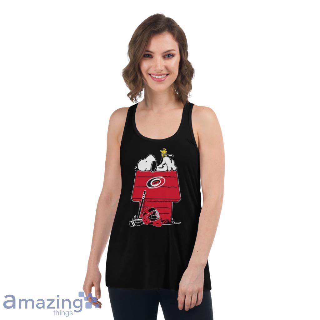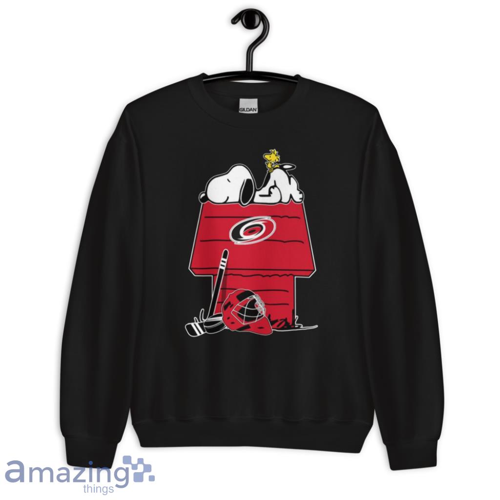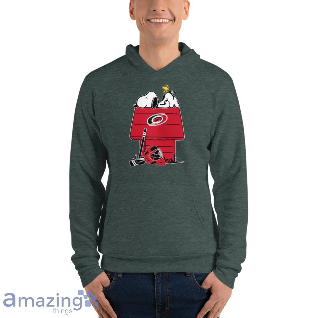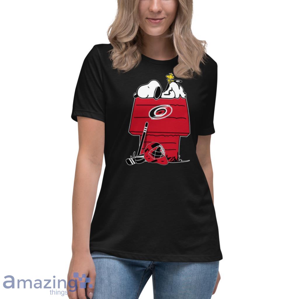 Crafted with the utmost attention to detail, this t-shirt features a vibrant graphic print of Snoopy and Woodstock wearing the iconic Carolina Hurricanes team colors. The high-quality fabric ensures a comfortable fit that will last through every game, practice, or casual outing.