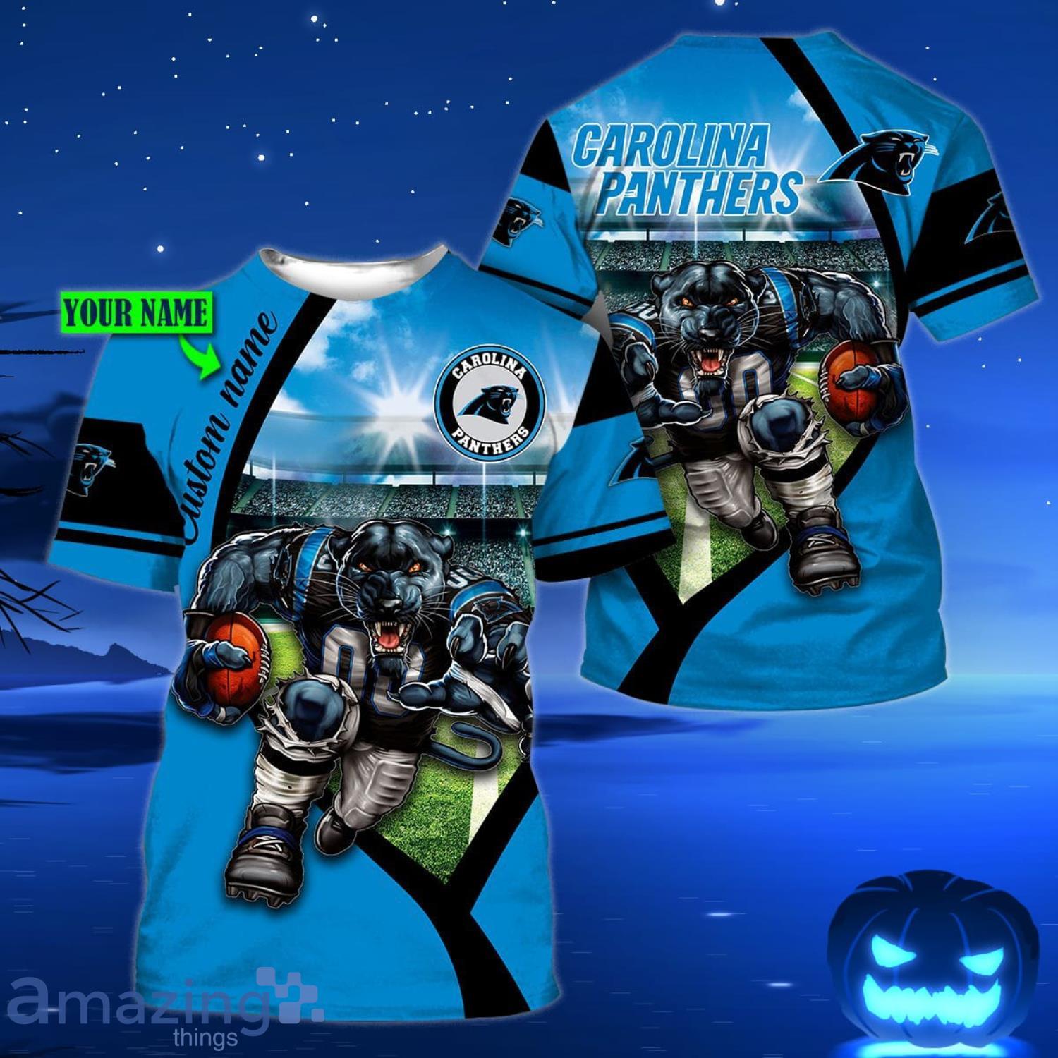 Perfect design for holiday. Get yours this shirt or this is a cute item for your daddy, gift for your mom, and gift for friends on any occasion. buy a cute Carolina Panthers Mascot Personalized Name 3D All Over Print Shirt For Fans now.