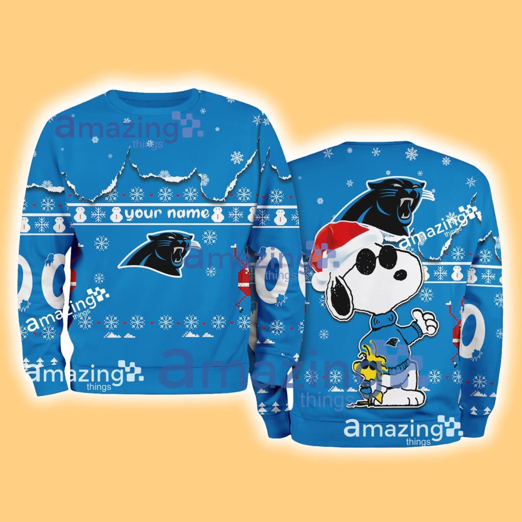 Carolina Panthers NFL Snoopy and Woodstock Cute Personalized Number Christmas Ugly Sweater New Gift Limited Edition