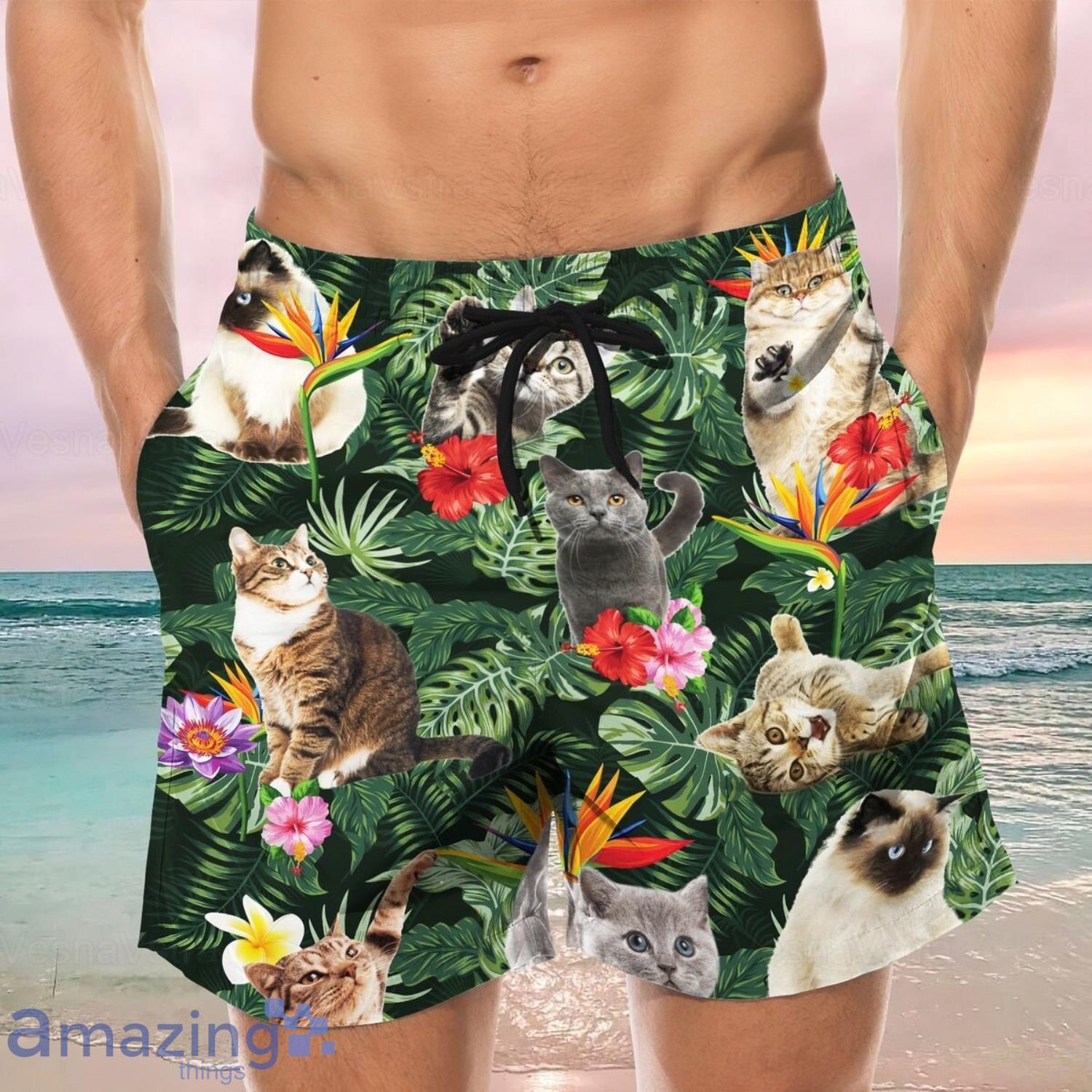 Cat Hawaiian Shirt And Shorts Cat Cat Button Shirt Floral Cat Shirt
