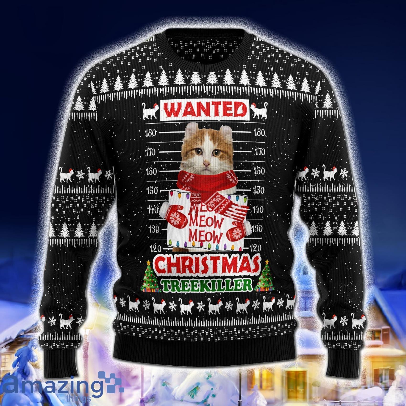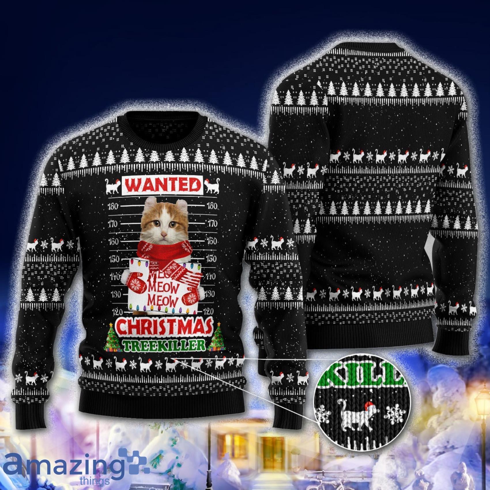 Cat Treekiller Wanted Meow Meow Meow Christmas Treekiller Black Christmas 3D Sweater Matching Family Shirts For Christmas Informations: