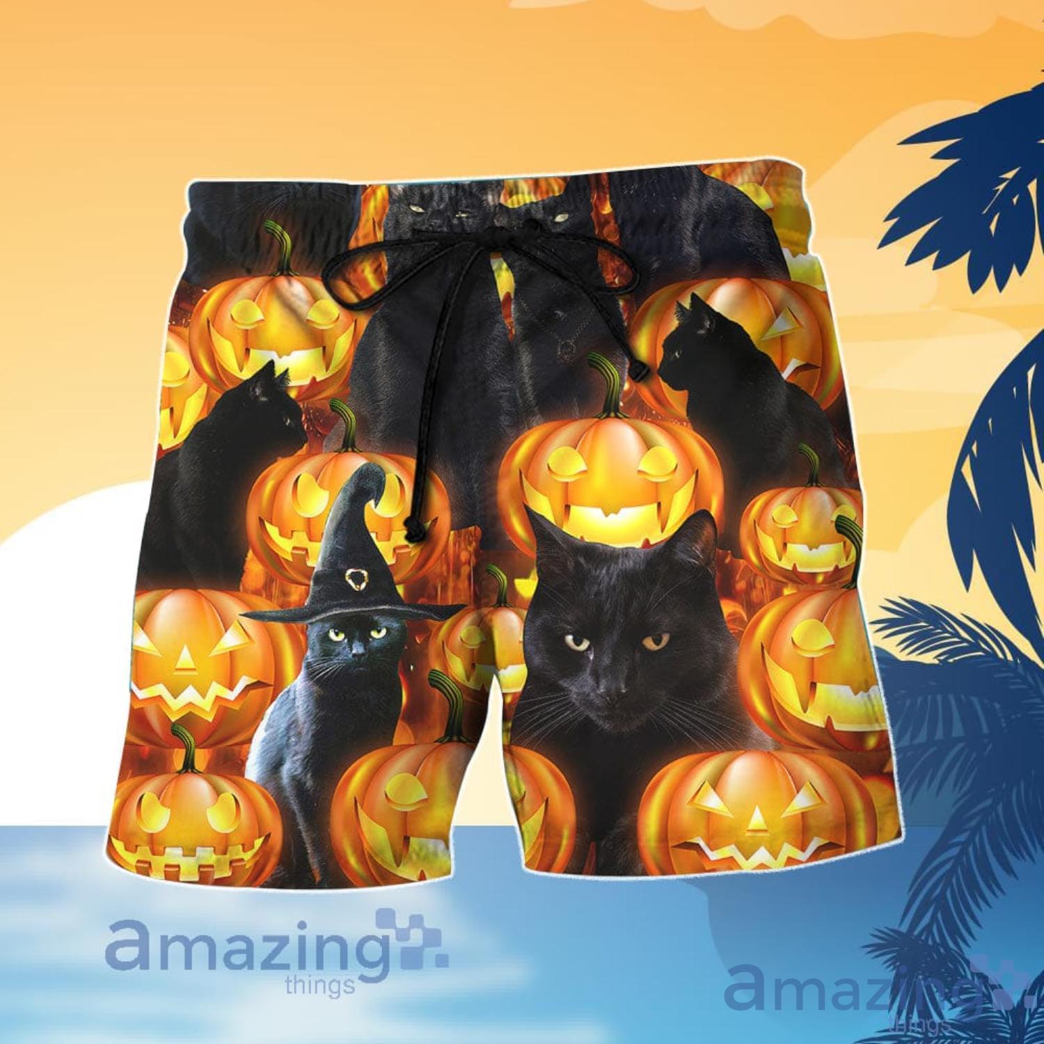 Cat Witch Shirt Cat And Scary Halloween Pumpkin Hawaiian Shirt And Shorts Details: