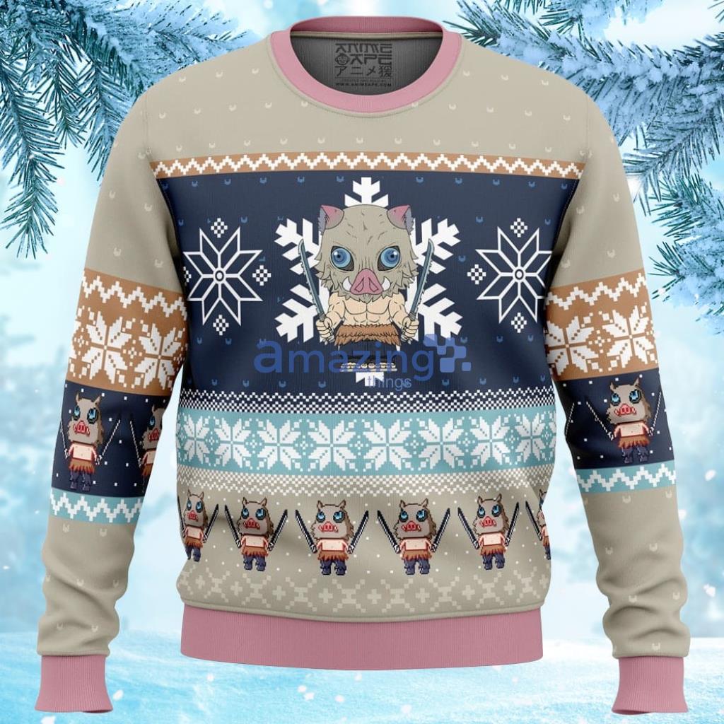 Get ready to slay the holiday fashion game with our Chibi Christmas Inosuke Hashibira Demon Slayer Ugly Christmas Sweater 3D!