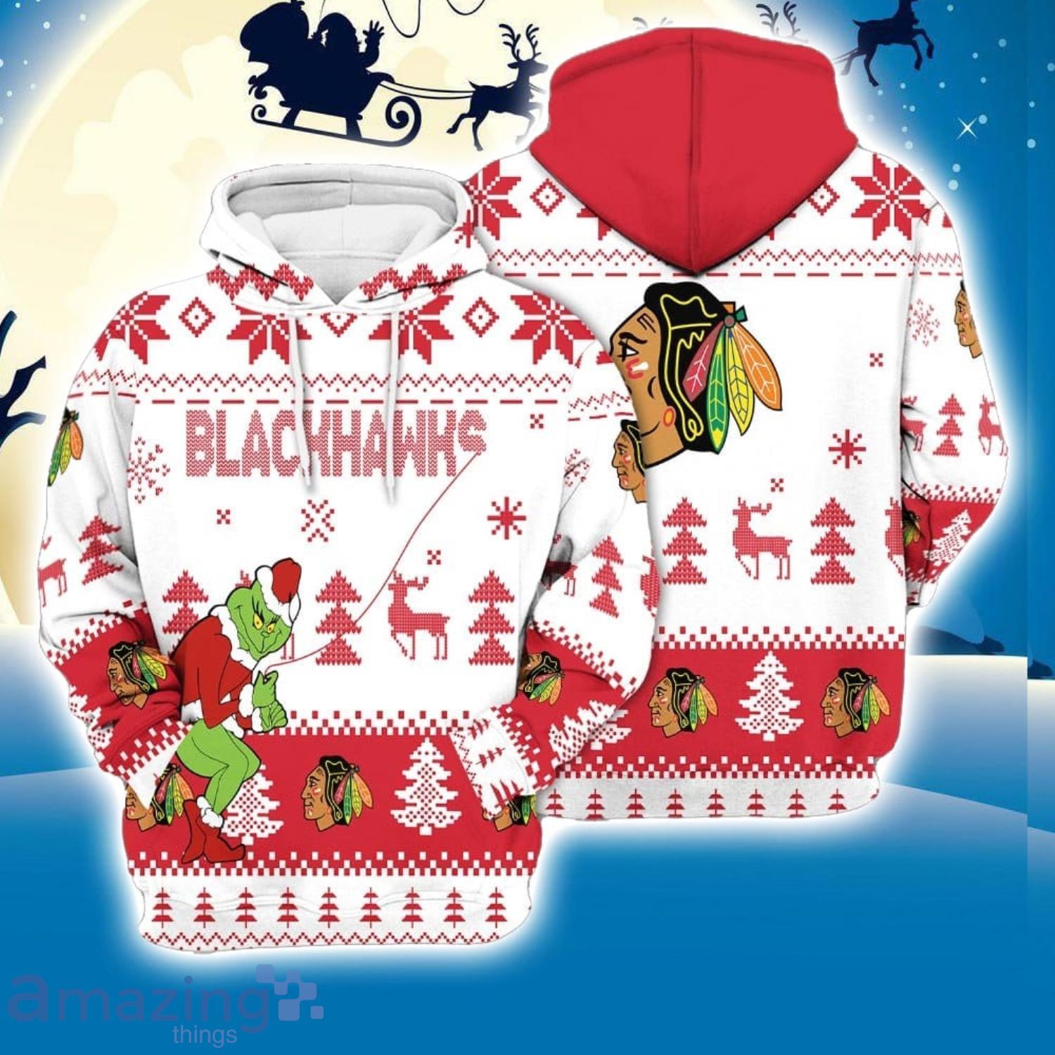 Chicago Blackhawks 3D Hooodie Ugly Sweater Sweatshirt Christmas Pattern Grinch Custom Name Ice Hockey NHL Fans Information