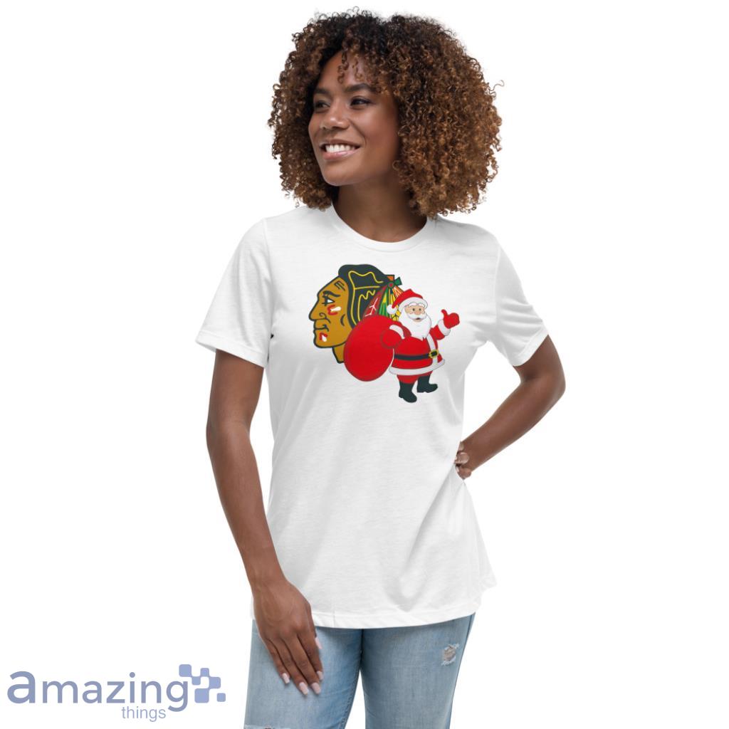 Celebrate this holiday season in style with our Chicago Blackhawks Santa Claus Logo Christmas T-Shirt! Show off your love for both the festive spirit and your favorite NHL team with this eye-catching and unique t-shirt.