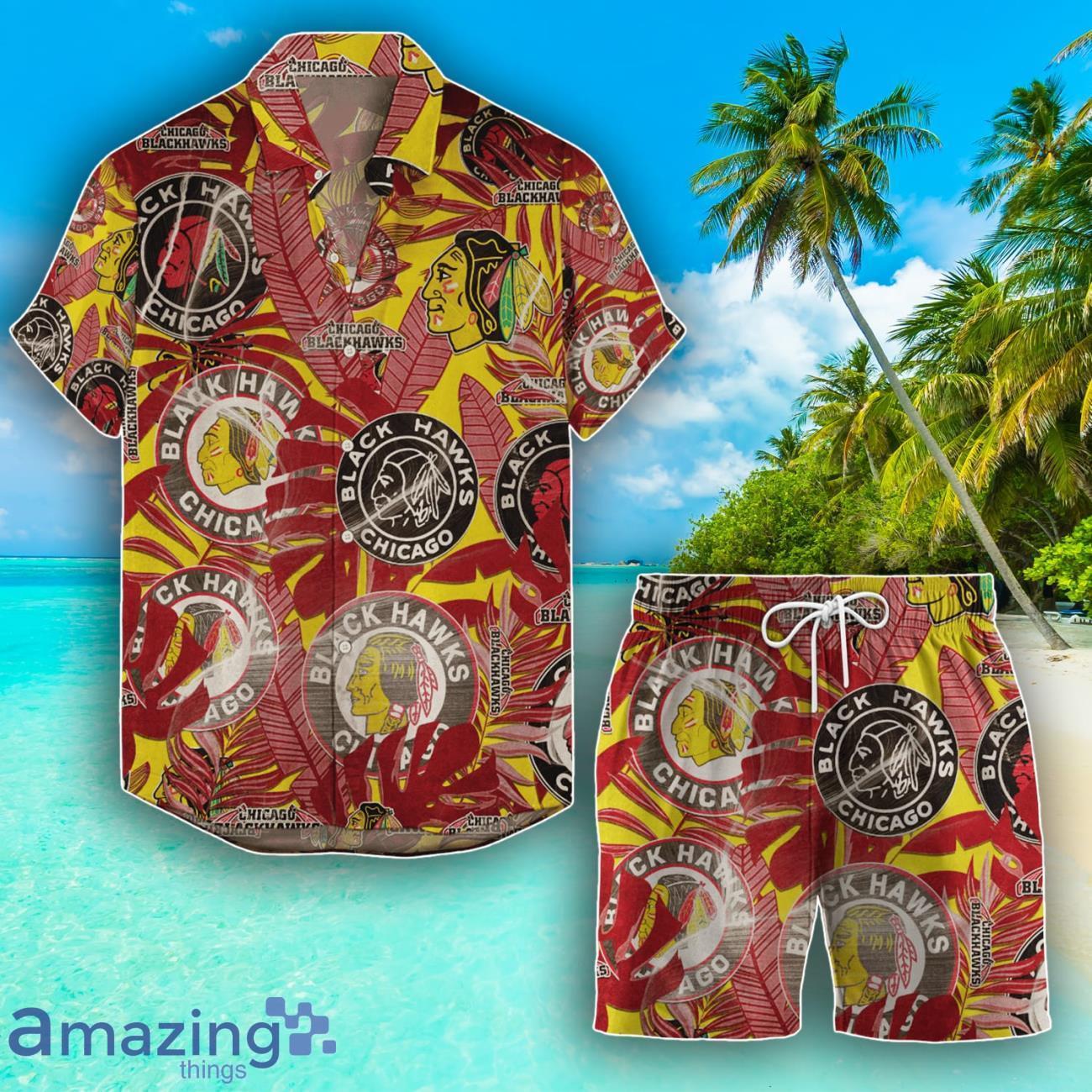 Chicago Blackhawks Set Hawaiian Shirt And Shorts Combo Retro Style For Fans Details: