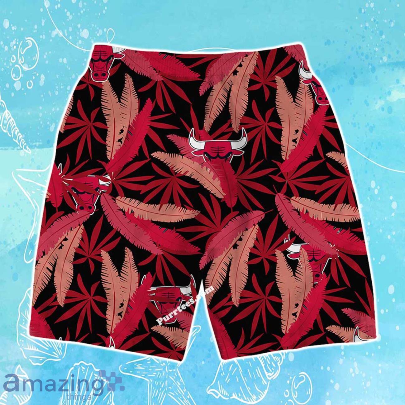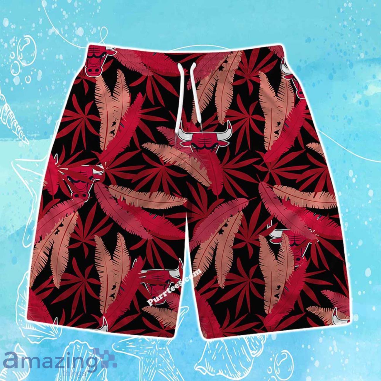 Chicago Bulls Team Logo Pattern Leaves Vintage Art Hawaiian Shirt & Short Details: