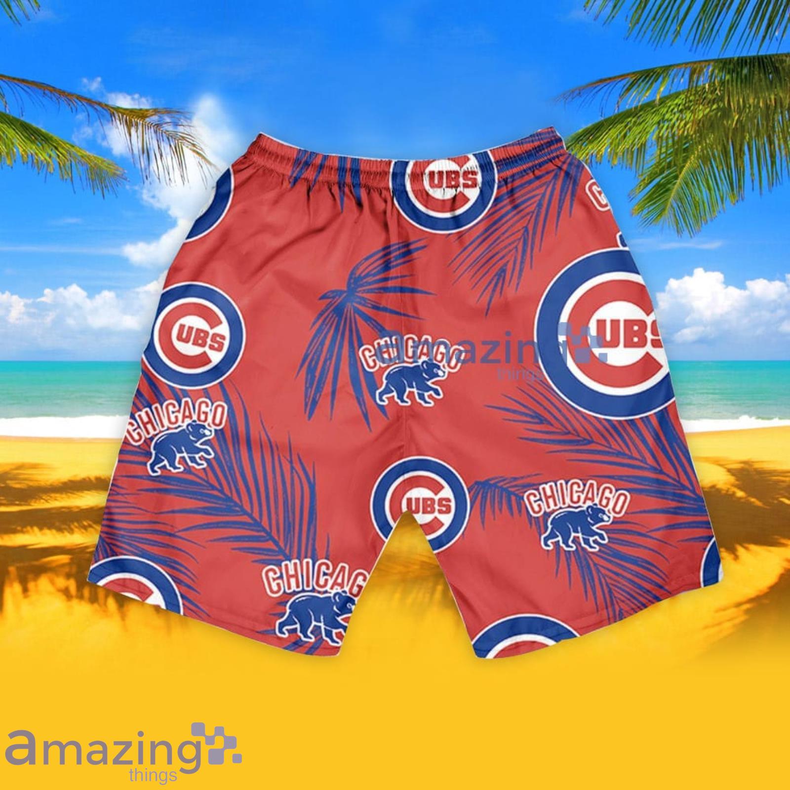 This design is available in a combo Hawaiian shirt & shorts. You can also get it separate. The default option is only one shirt or one pair of shorts. You have chosen a combo to get them both. This combo Chicago Cubs Palm Leaves Pattern Hawaiian Shirt And Shorts Summer Gift For Cubs Fans is perfect to go to the beach. Get yours now or make a great gift.