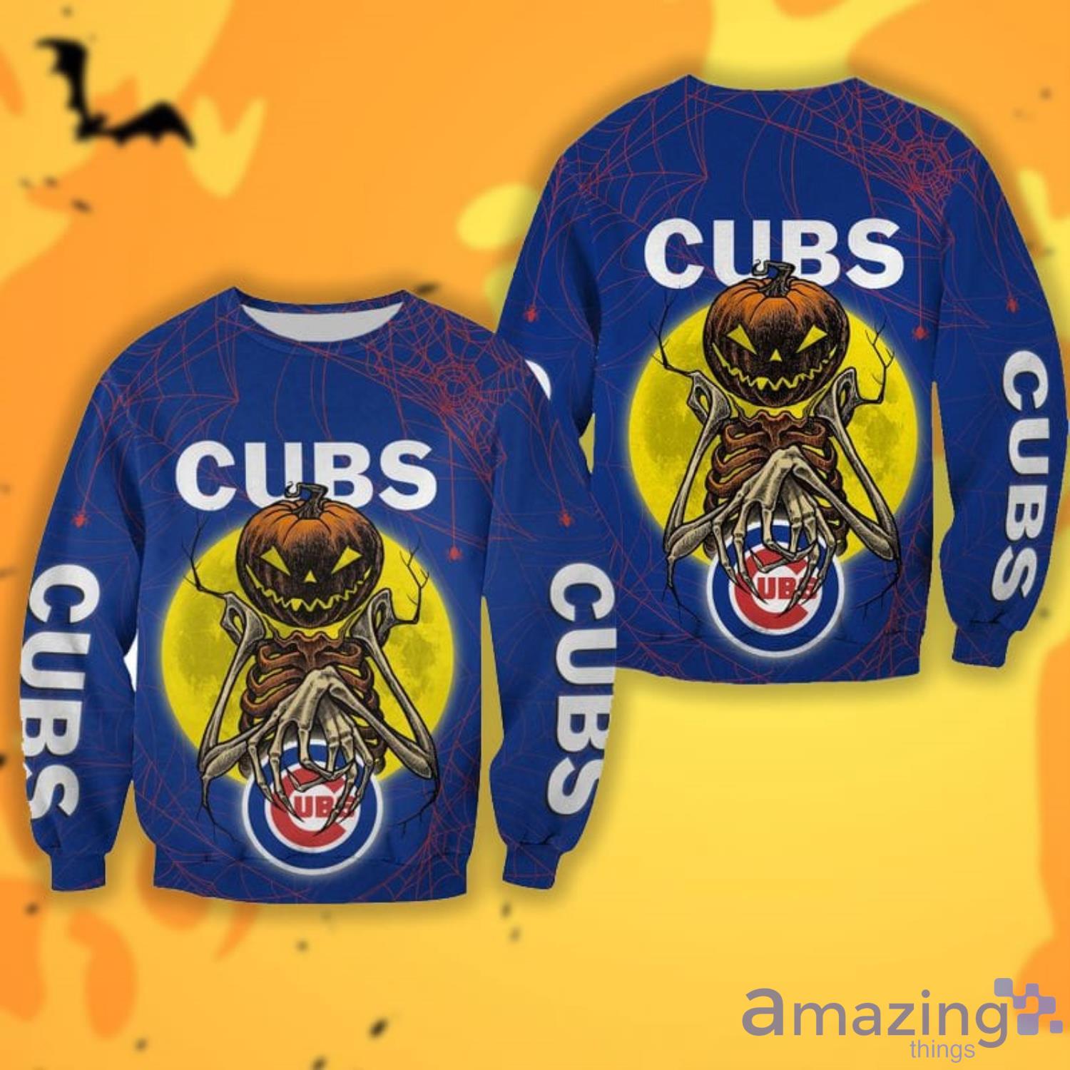 Perfect design for holiday. Get yours this shirt or this is a cute item for your daddy, gift for your mom, and gift for friends on any occasion. buy a cute Chicago Cubs Pumpskin Monster Halloween 3D All Over Printed Shirts now.