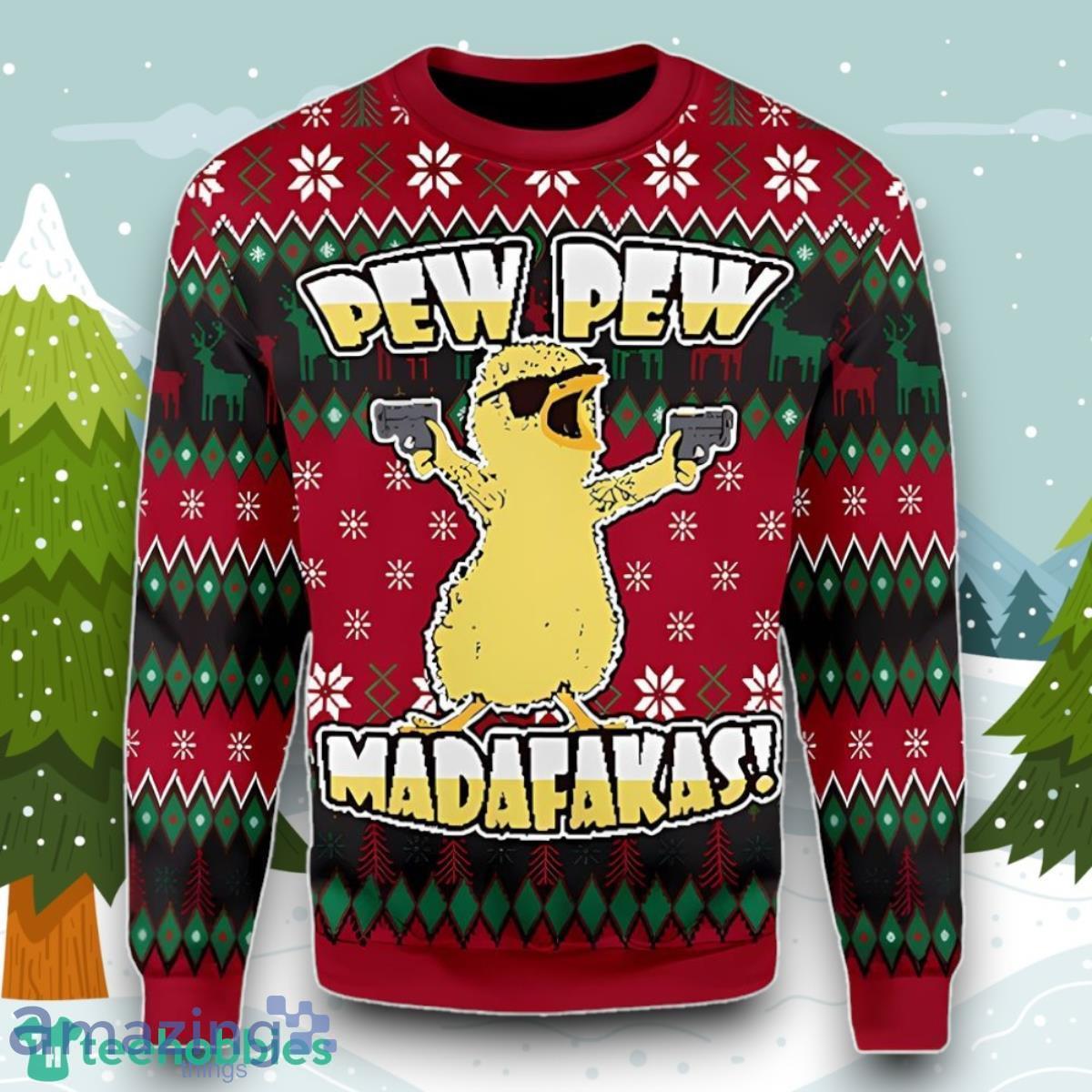 Chicken Pew Pew Madafakas Funny Chicken Gangster Meme Ugly Christmas Sweater Style Gift