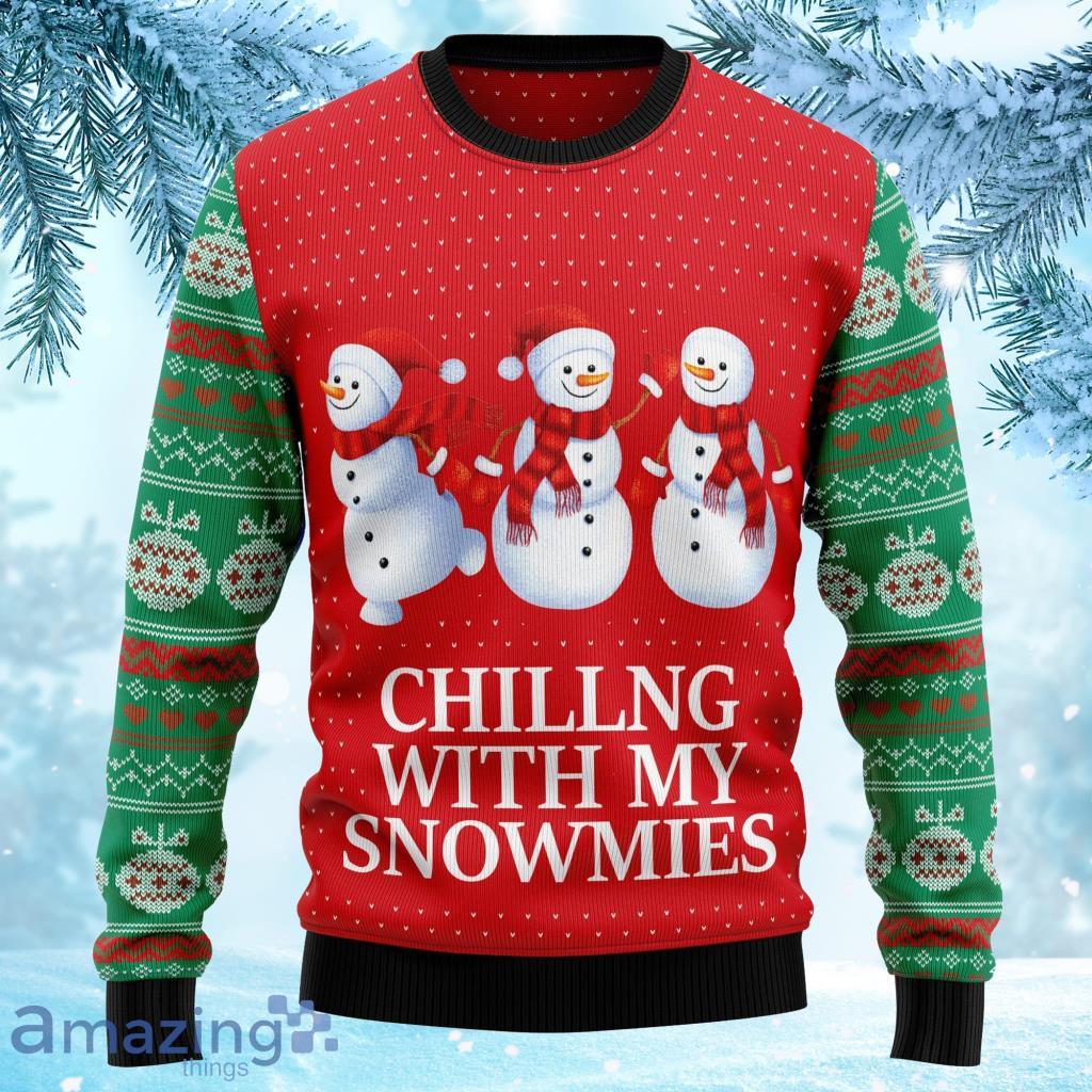 Chilling With My Snowmies Christmas Unisex Crewneck Ugly Christmas Sweater 3D Informations: