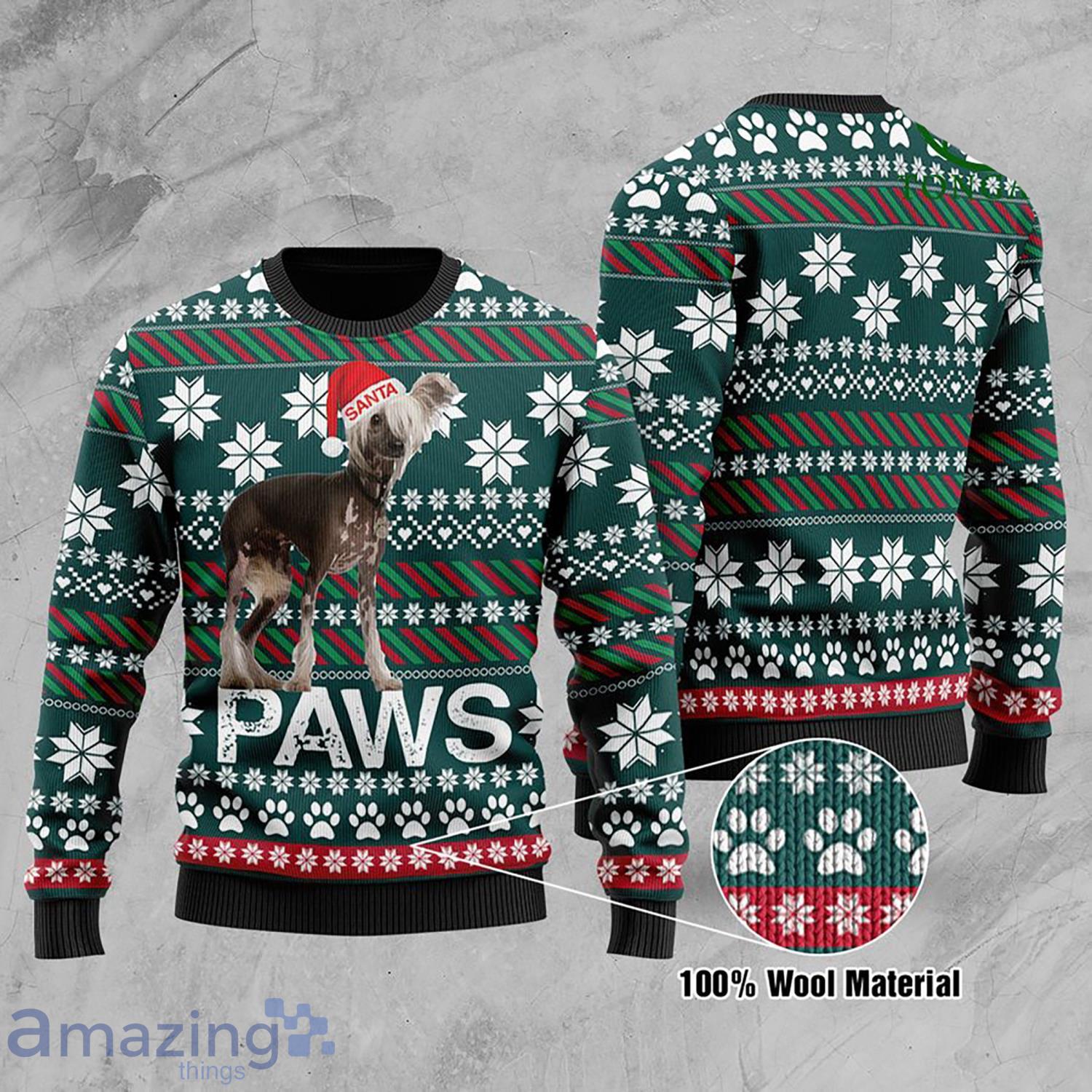 Featuring a charming Chinese Crested Santa design, this sweater combines the cuteness of your favorite pup with the jolly spirit of Christmas. The intricate printing brings the adorable Santa to life, making it a standout piece at any holiday gathering or office party.