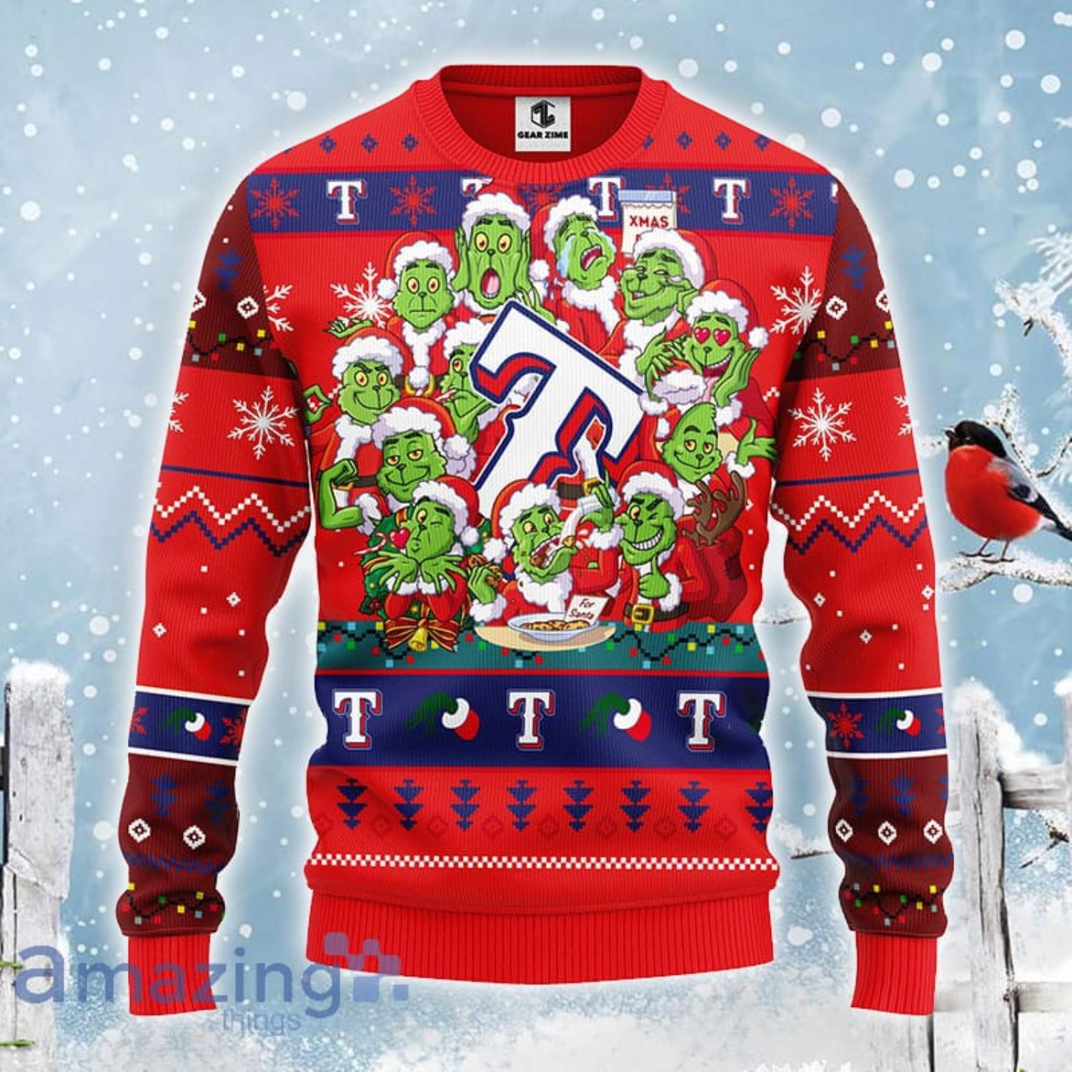 Christmas Gift MLB Texas Rangers Cute 12 Grinch Face Xmas Day Ugly Christmas Sweater