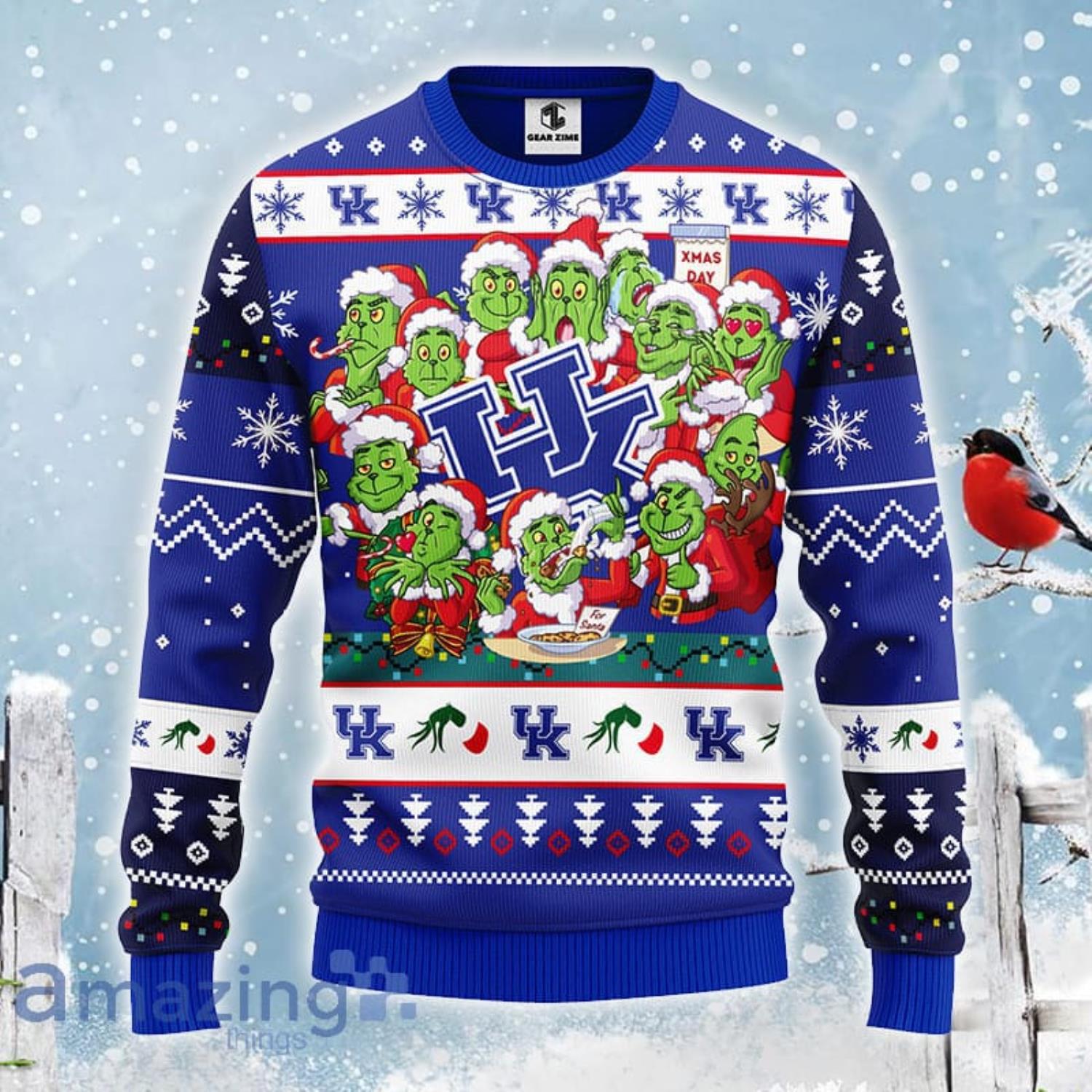 Christmas Gift NCAA Kentucky Wildcats Cute 12 Grinch Face Xmas Day Ugly Christmas Sweater Informations: