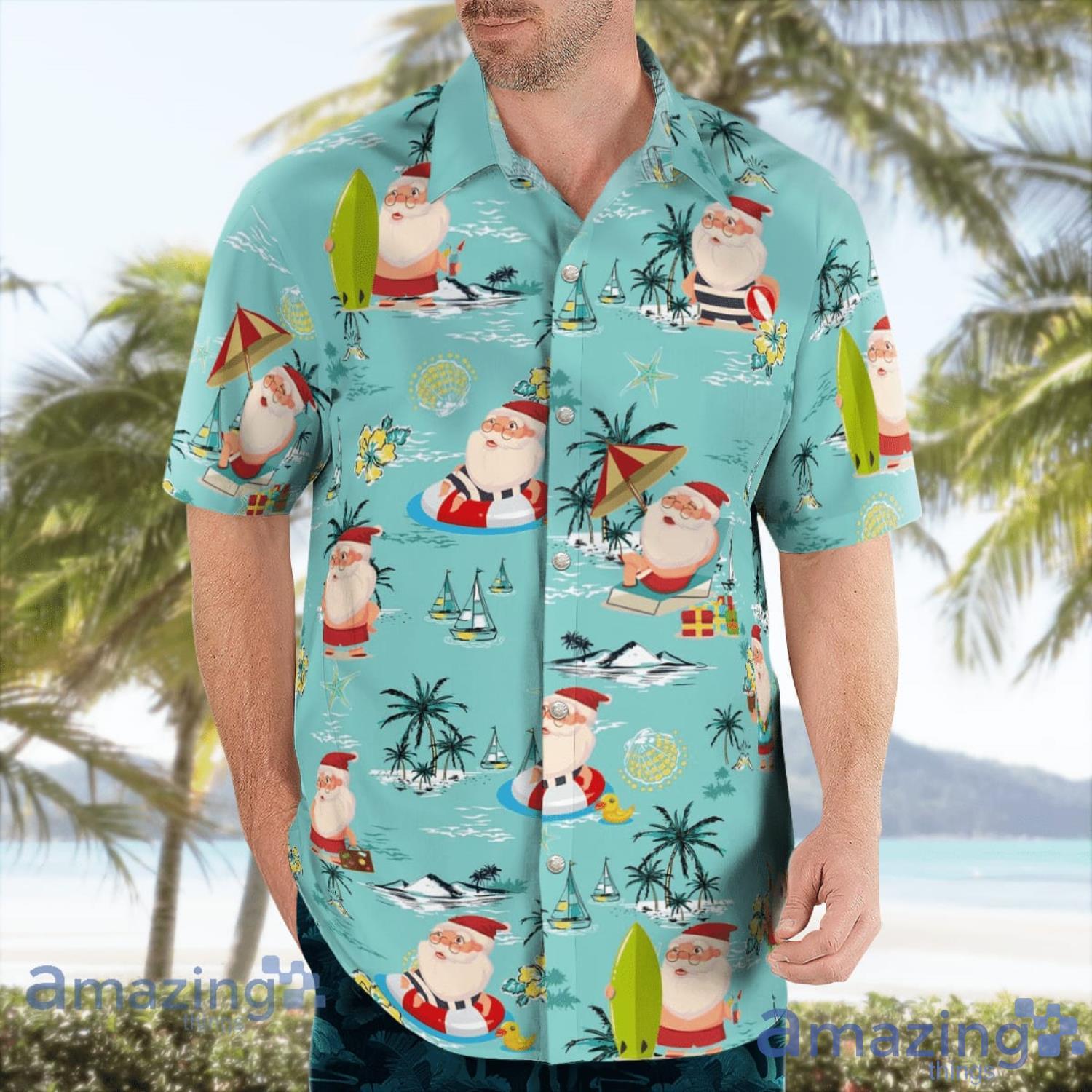 Christmas In July Funny Santa Beach Summer Gift Hawaiian Shirt Details: