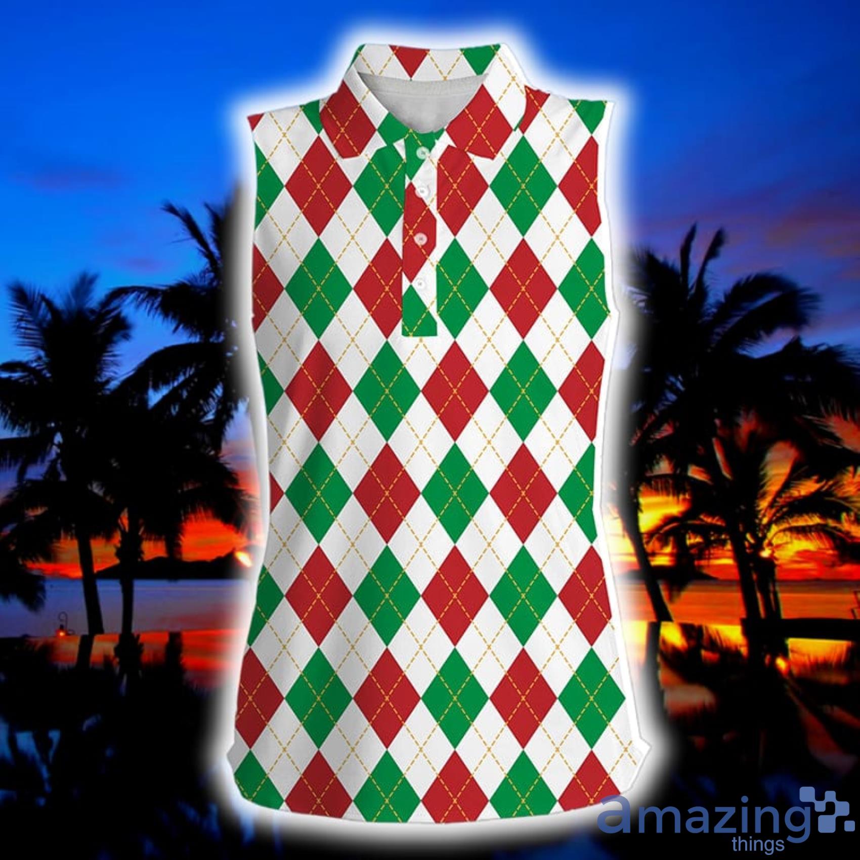Get ready to rock your holiday season in style with our Christmas Plaid Argyle Pattern Team Women’s Sleeveless Polo Shirt. This stunning polo shirt is the perfect addition to your festive wardrobe, featuring a classic plaid argyle pattern in traditional Christmas colors of red, green, and white.