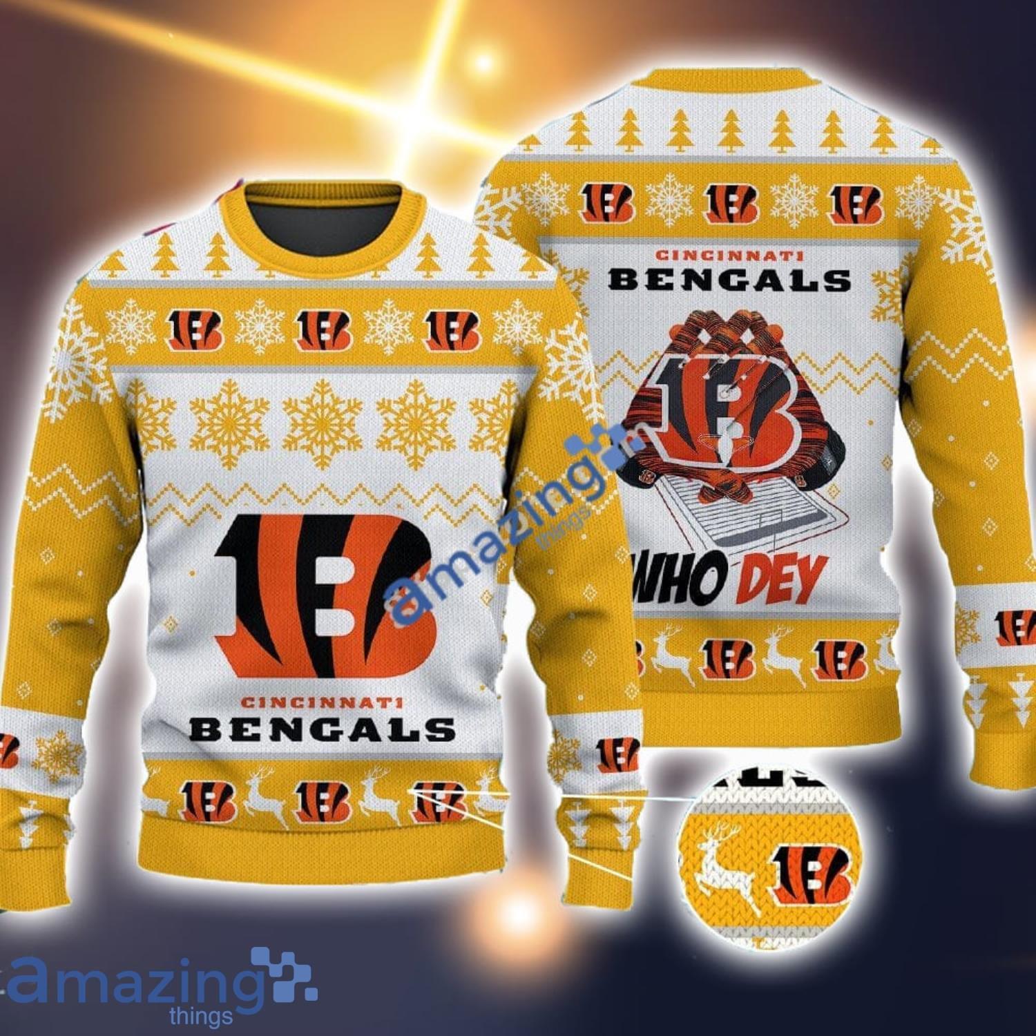 Crafted from high-quality materials, this sweater is as comfortable as it is eye-catching. The soft fabric keeps you warm during those chilly winter evenings, while the durable construction ensures it will last for many seasons to come. The unisex design makes it suitable for both men and women, allowing you to spread the Bengals love amongst your family and friends.