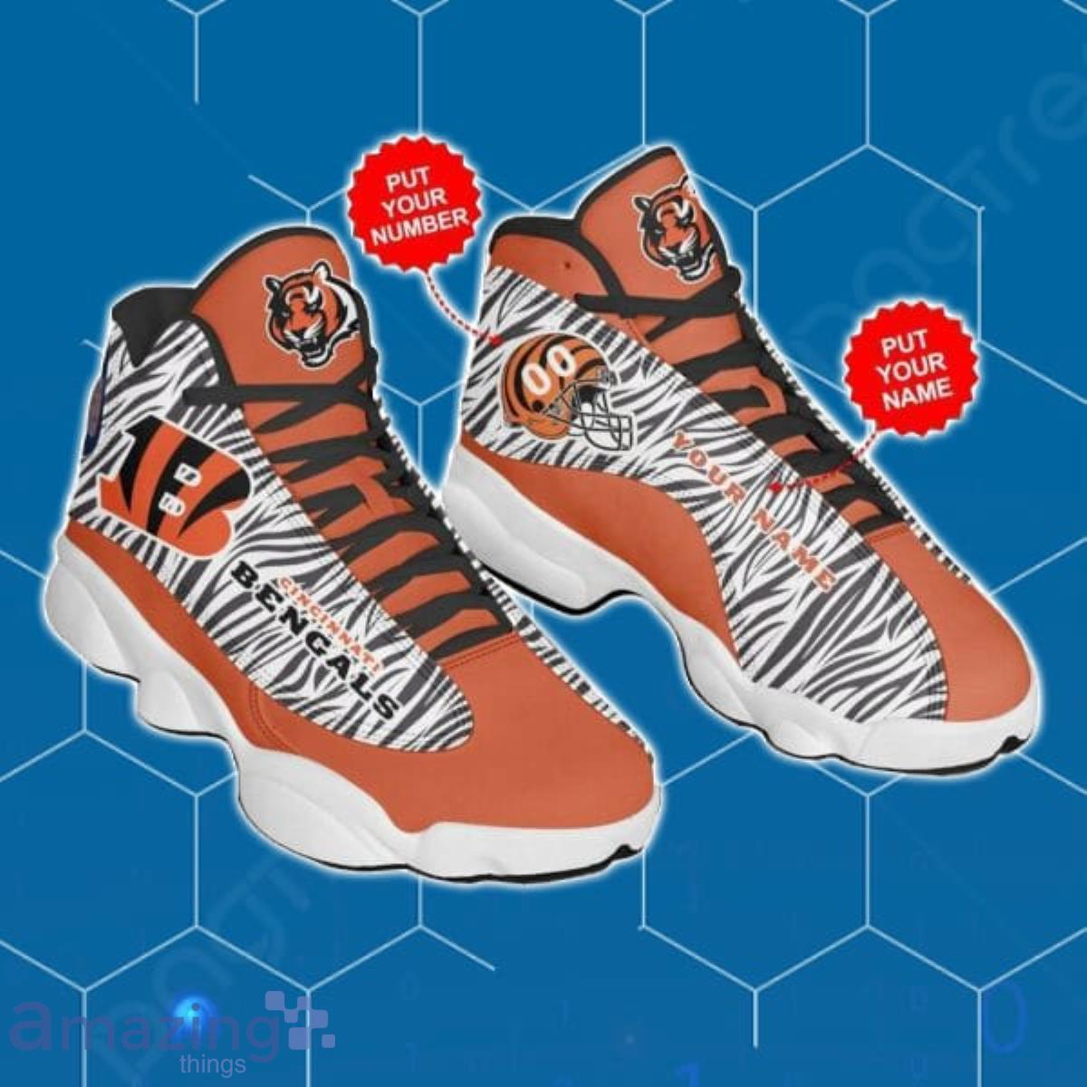 The Cincinnati Bengals NFL Air Jordan 13 is the ultimate game-day footwear that combines style, comfort, and team spirit. Designed exclusively for loyal Bengals fans like you, these sneakers are a must-have addition to your collection.